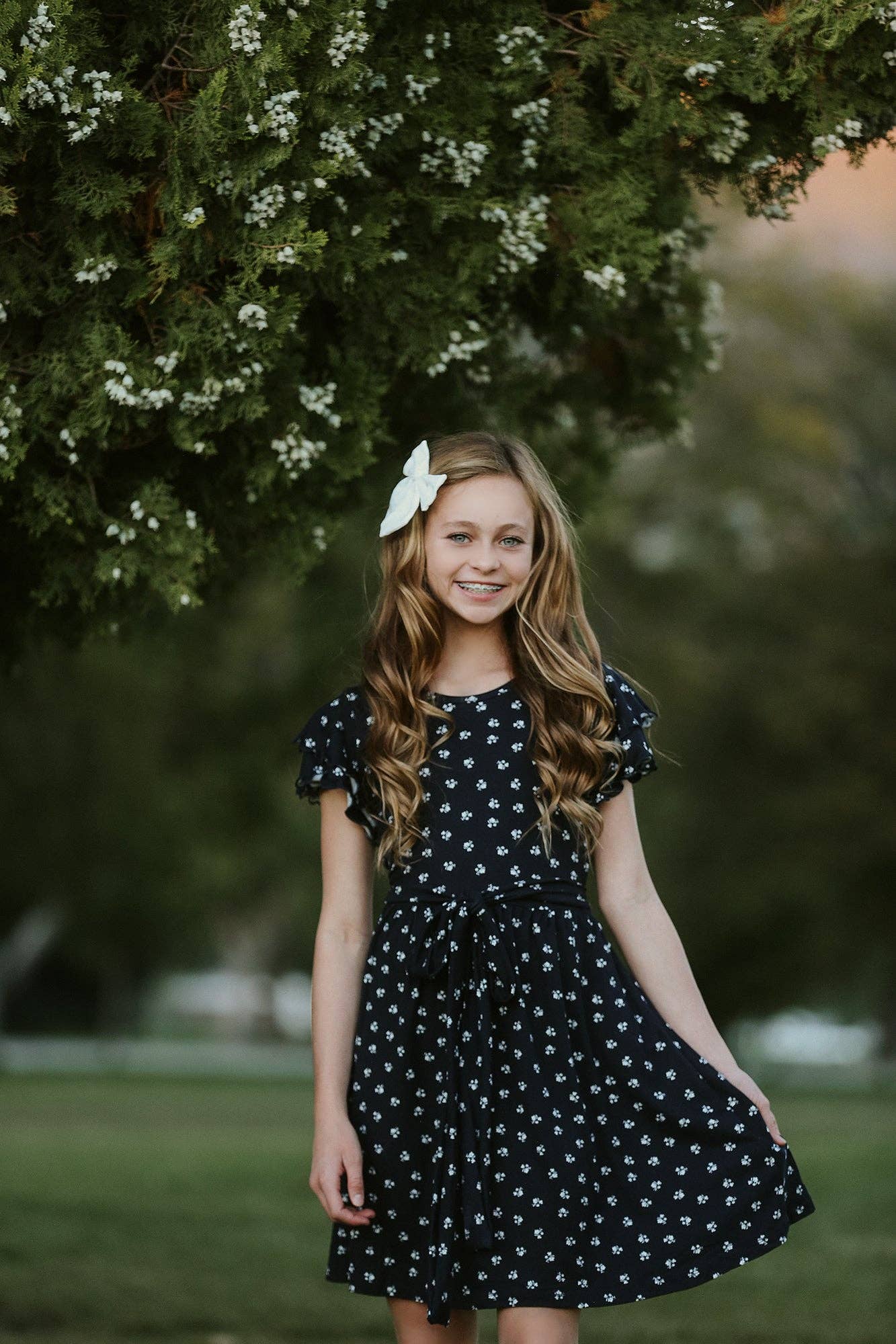 Denne Sofie Floral Twirl kjole har komfort såvel som cuteness! Det har en dobbelt flæse ærme, skjulte sidelommer til sejren! Denne kjole ser vidunderligt parret med en rubin eller rød cardigan til et sødt ferielag! Din datter vil ikke tage den af! Anbefalet: Maskinvask koldt, hæng for at tørre eller tørretumbler lavt. Materiale: Poly/spandex Vi sætter en ære i vores produkter, vi er overbeviste om, at du vil elske vores tøj, men hvis du ikke er 100% tilfreds, tilbyder vi enkle returneringer. Se vores returpolitik for bekymringer eller spørgsmål. Alle stykker er designet og produceret under Monicas tilsyn. Dit køb sendes fra Utah inden for 48 timers bestilling.