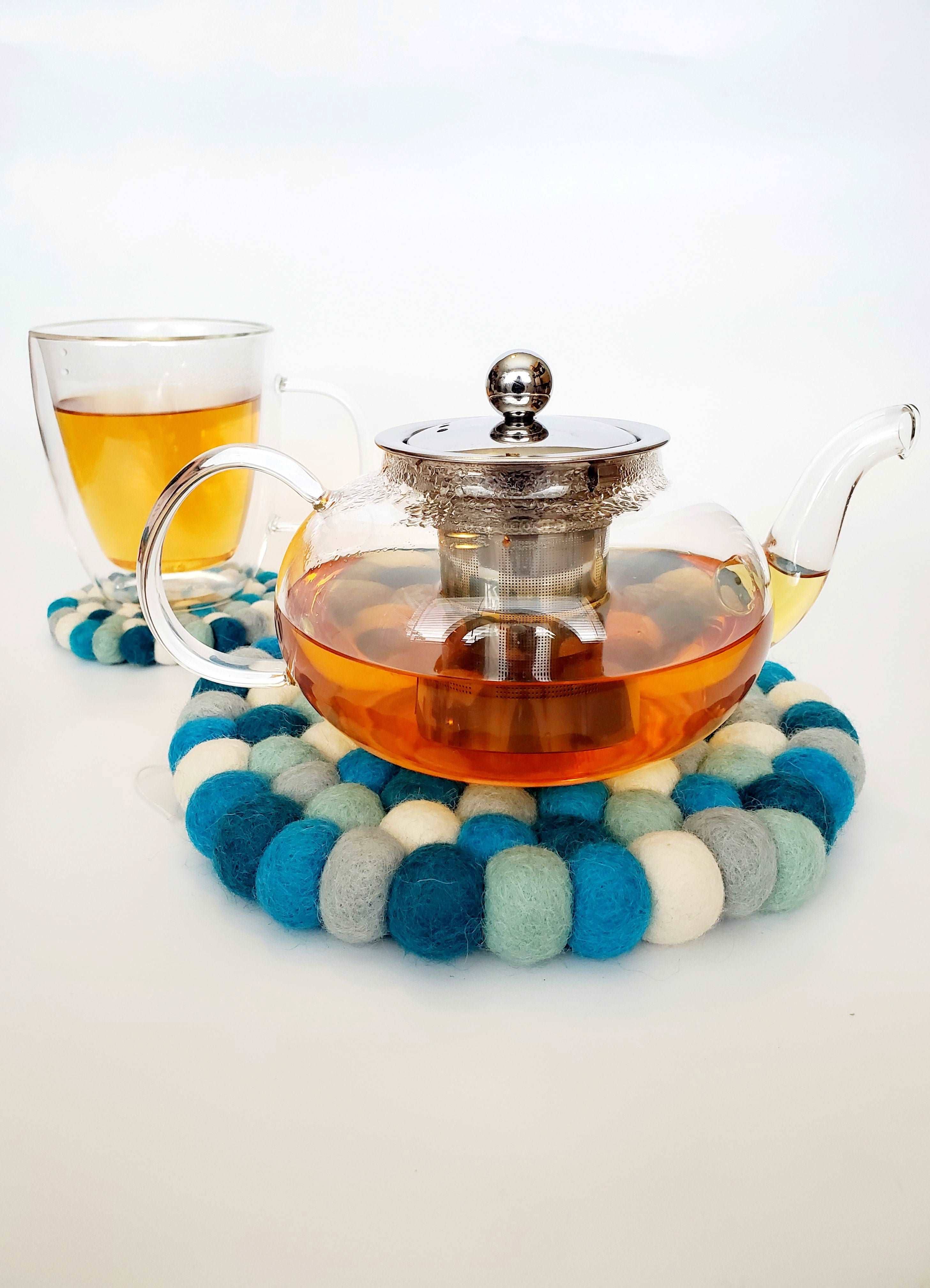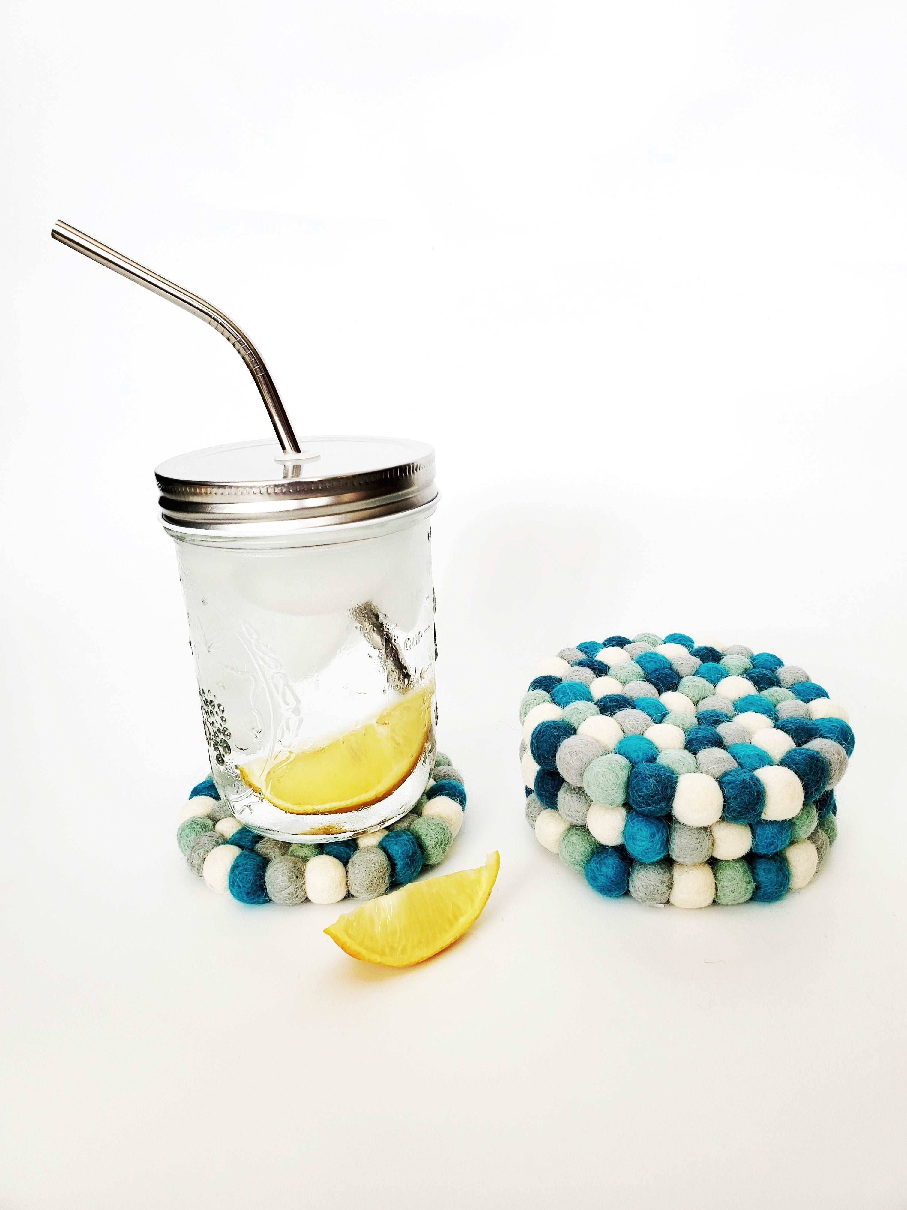 Middelhavsblå uldfilt håndlavede Pom-Pom servietringe