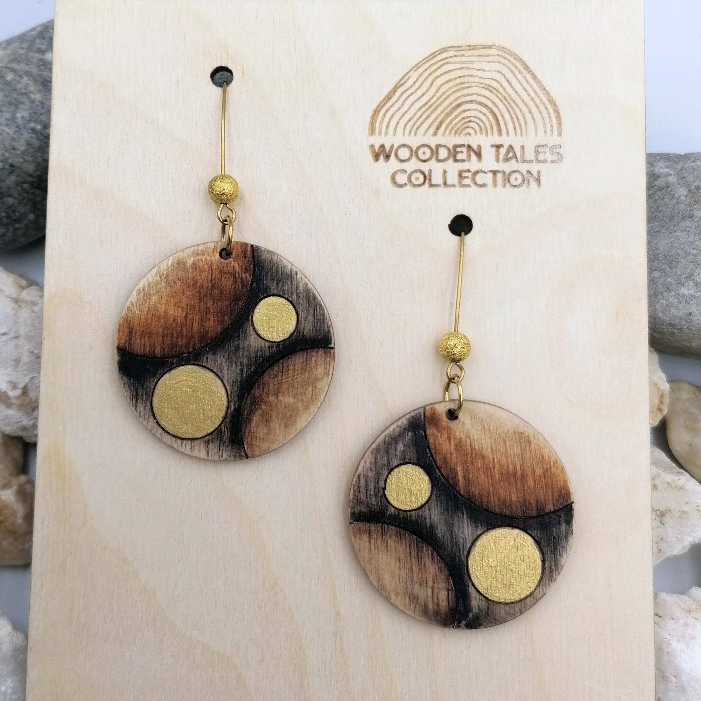 Hvert sæt indeholder 1 juletræsfod og 35 pynteting med 35 par nitteøreringe. Håndlavede juleøreringe i træ på træ-juletræsophæng. Øreringene er placeret på små julepynt, som derefter hænges på juletræet. Hver ørestik leveres med en smuk lille julepynt, der kan bruges som dekoration eller som øreringeholder. Disse håndlavede øreringe er meget lette og lavet af 3 mm birkefiner. Enkle og stilfulde for dem, der værdsætter naturlige og håndlavede produkter. De er håndmalede med naturlige farver, hvilket fremhæver træets naturlige årer og strukturer. Der er tilføjet guld- eller sølvdetailler oven på farven, og de er derefter forseglet med en satinmat lak for beskyttelse og holdbarhed. Øreringestifterne er lavet af hypoallergent rustfrit stål. Produktstørrelse: 1,3 cm (0,5 tommer). Hver vare er unik, så der kan være små variationer på grund af træets naturlige årer.