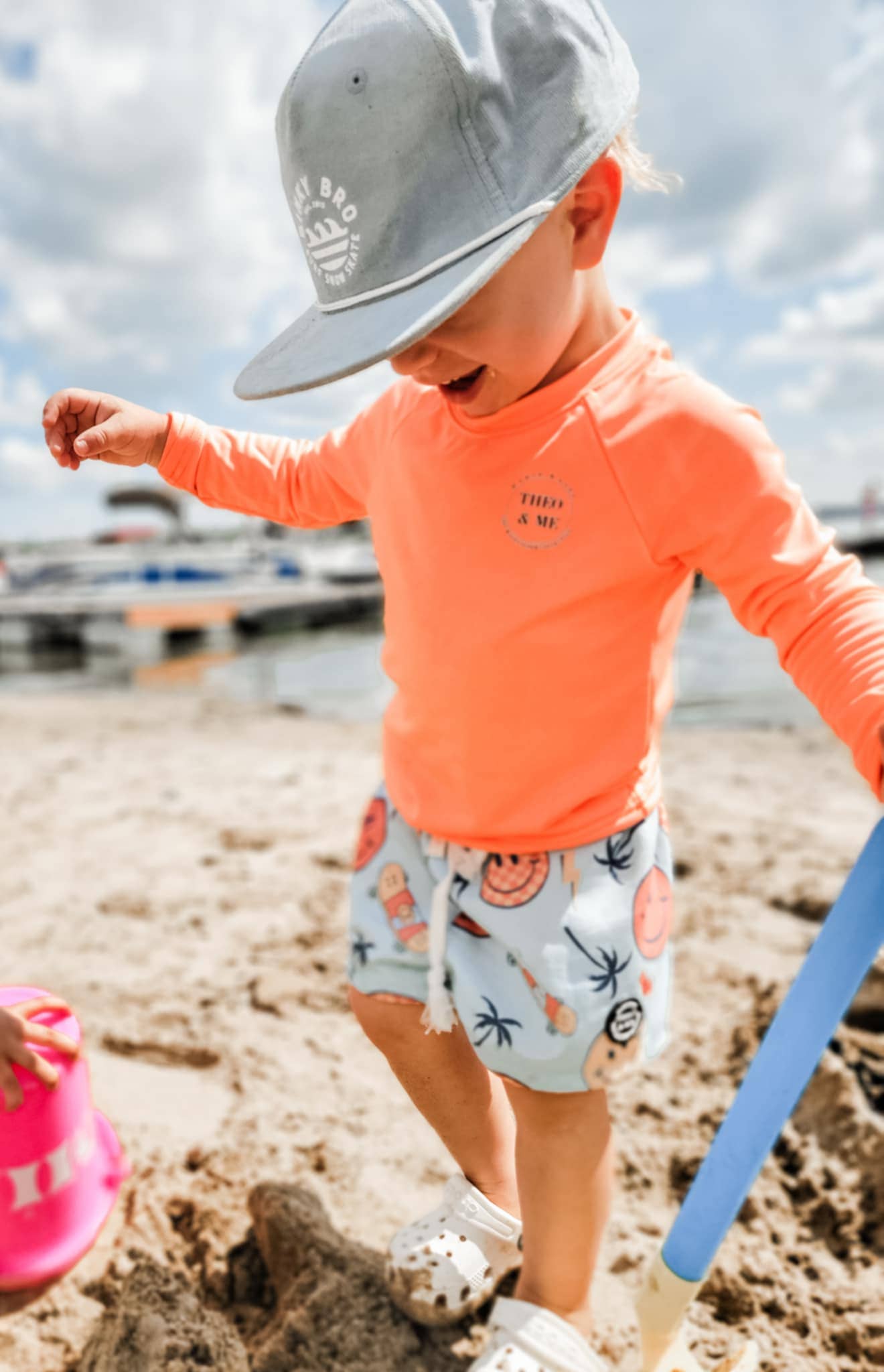 MÆRKE: Theo & Me SVØMMETRØJE IKKE INKLUDERET - Men kan findes under Boys Rash Guard Swim Shirt SOLBRILLER - Baby Toddler Sommer Solbriller Unikke, alsidige og boutique-søde — vores sommer svømme- og legeshorts til spædbørn og små drenge er her! Sig farvel til dinosaurer og lastbiler og hej til legende prints som vores seje ananas med solbriller — designet til din lille trendsetter. Lavet af blødt, åndbart stof med fuld foring, disse drengesvømmeshorts er perfekte til leg fra land til vand. Fås i størrelser fra 6M til 6Y, med dristige farver for svømmesikkerhed og bløde pasteller til den neutral-elskende mor. Rummelige nok til at have over en svømmeble. Sommer sjov starter her! Detaljer: *Fås i spædbørn 6 måneders størrelser til børnestørrelse 6 *Lyse dristige muligheder for svømmesikkerhed *Forede svømmeshorts *Plads til engangs- eller genanvendelige svømmebleer *Elastik i taljen