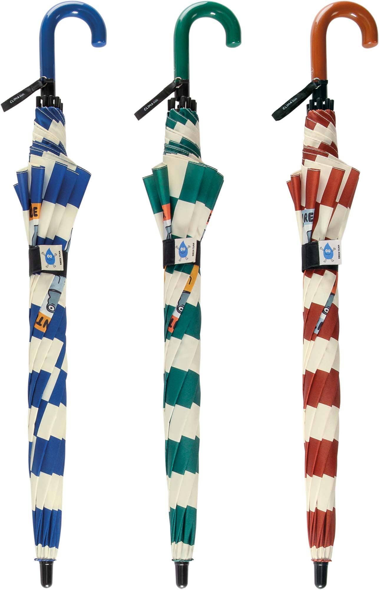 Oplev vores Clima Kids 'Frog' børneparaply, designet specielt til børn i alderen 5 til 8 år. Paraplyen er 72,5 cm lang med en diameter på 95,5 cm og er den perfekte følgesvend på regnvejrsdage. Den er fremstillet i højkvalitets genanvendt polyester, der sikrer holdbarhed og vandafvisende egenskaber. 'Frog'-paraplyen har en sjov dekoration med ternede motiver og fås i farverne rød, blå og grøn. Disse farverige og muntre designs gør regnvejrsdage endnu mere fornøjelige for børn. Stol på Clima Kids mærket for at give børn en sikker og funktionel paraply. Clima Kids 'Frog' børneparaply er det ideelle valg for at beskytte børn mod regnen samtidig med, at de får lidt sjov til deres regneventyr.