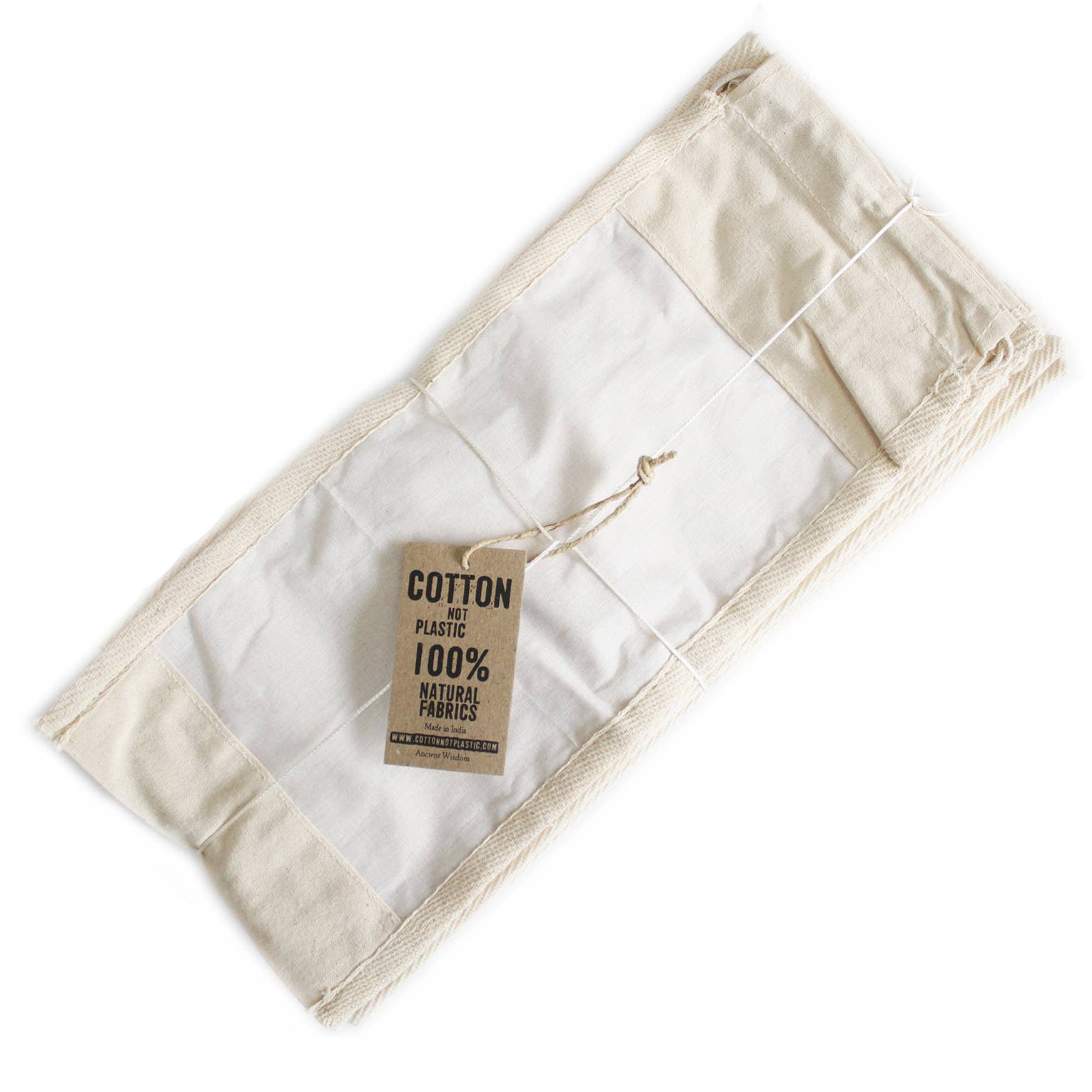 Vores 100% bomuldsstøvpose er enkel, naturlig og perfekt at bruge som indkøbsnet, samtidig med at den giver et ekstra lag beskyttelse til dine tæpper, plaider, lædervarer, hatte osv. Beyond Borders Collective gør konstant en indsats for at give dig smukke og bæredygtige produkter af høj kvalitet. Husk, MINDRE plastik er ALTID bedre. Produktdetaljer: * Mål: 66 cm x 48 cm * Materiale: 100% bomuld *Det afbildede tæppe og hat er ikke inkluderet ved køb af en støvpose.*