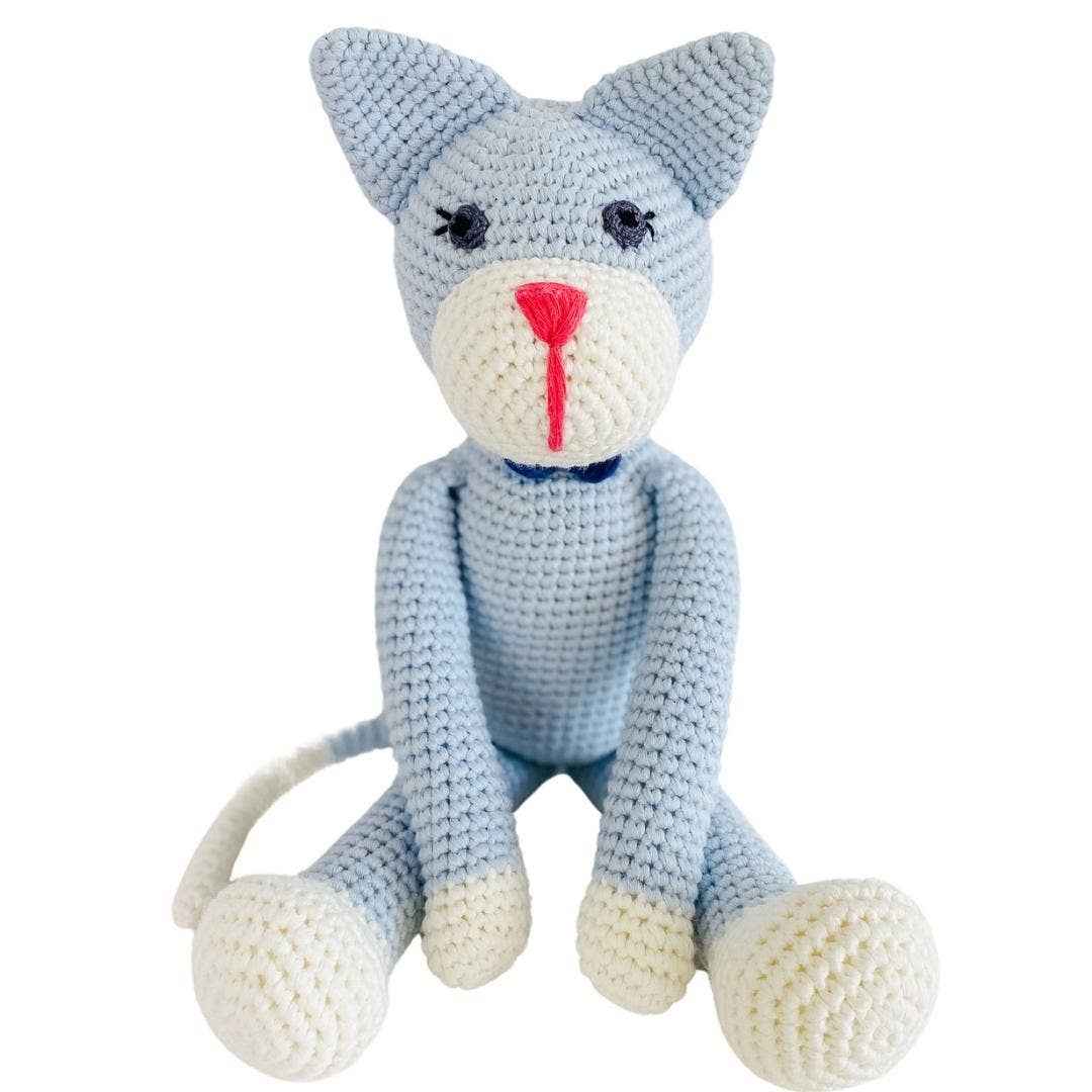 Håndlavet, hæklet udstoppet dyr løve Helt håndhæklet i GOTS økologisk bomuldsgarn af vores håndværkskvinder. Lavet med GOTS økologisk bomuldsgarn, håndhæklet, fyldt med allergivenlig fyld Alder: 0-og fremefter Overholder legetøjs sikkerhedsstandarder Leveres i en individuel bomuldspose med bånd og et kort med navnet på den håndværker, der lavede legetøjet.