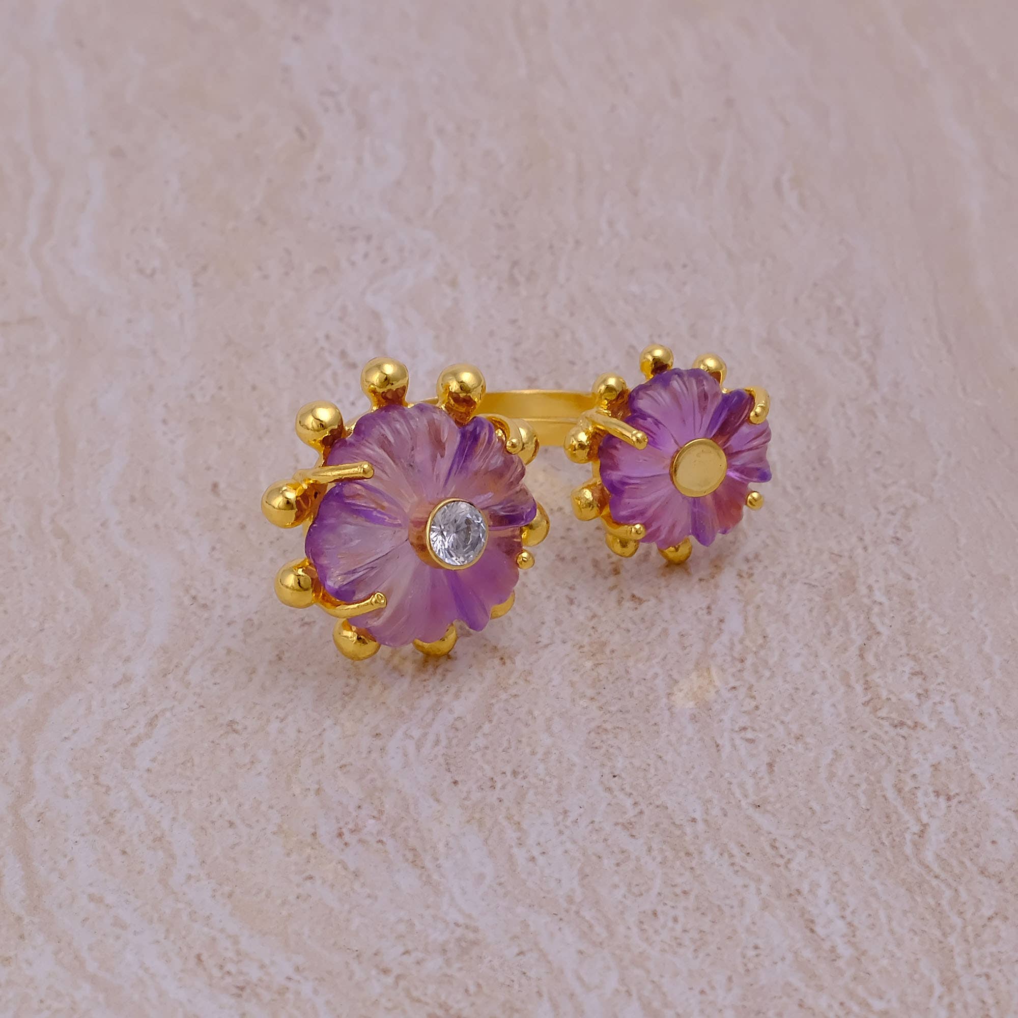 Dyreformede ringe med sten. Der er dem med elefantformer, blomsterformer og former som roser og kløver. De fås i guld og sølv. De købes i pakker med 4 enheder.