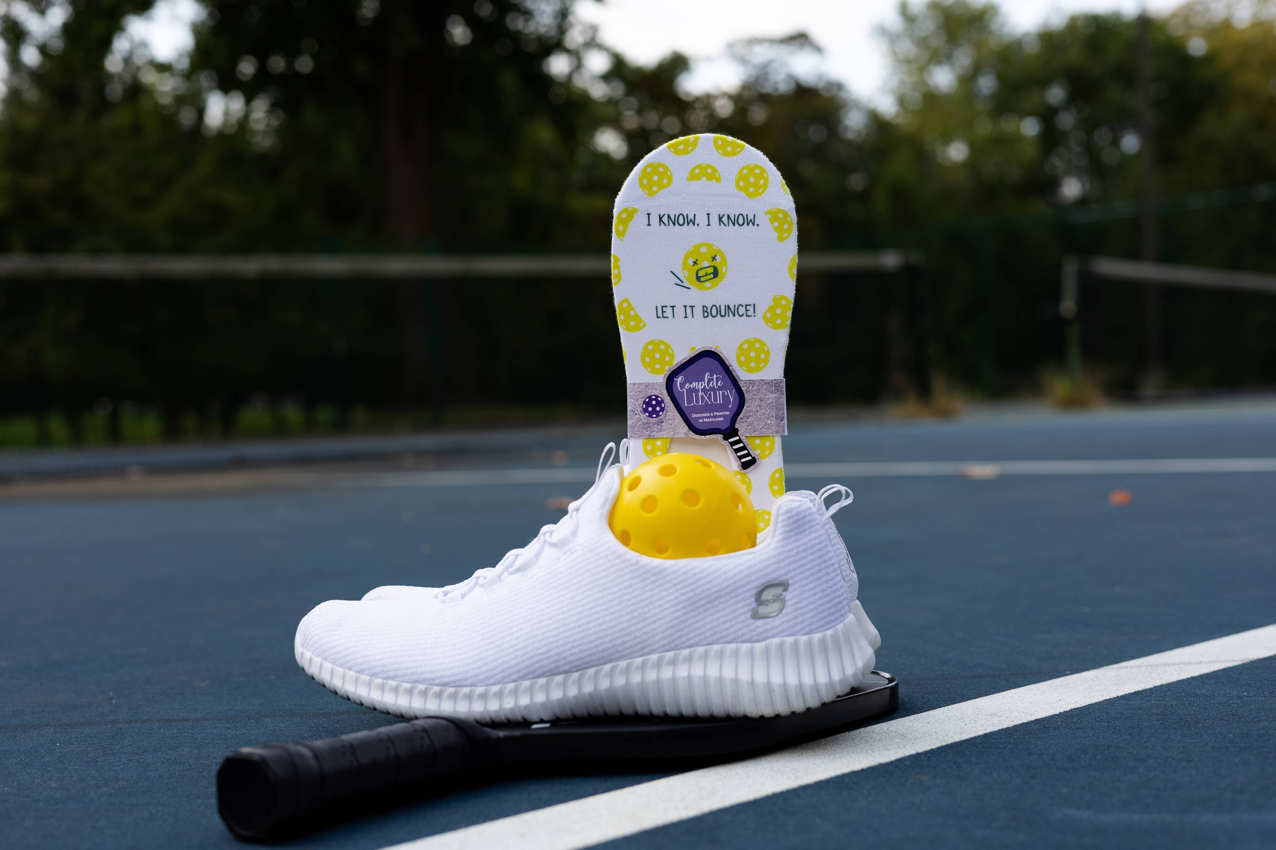 Super komfortable kvinders No Show sokker Pickleball kærlighed ketsjer allover design. Bagsiden indeholder alle de små grønne pickleballs! Fantastisk til fødselsdage, jubilæer, og enhver ferie! Beskrivelse: Bomuld/Poly/Spandex (elastan) Maskinvask To størrelser: Kvinders sko størrelse 5-8 eller kvinders sko størrelse 9-11 Fordele: Gaver: Fantastisk til fødselsdage, jubilæer, og enhver ferie! Loungewear: Bær, når du ikke kan være på pickleballbanen! Sport: Brug for „held og lykke“ under dine kampe! Sjovt: Bring et smil til dit ansigt, når du tager dem på og tager dem af! #giftsforher #gifts #lovesocks #socklover #socks #valentinesday #pickleball #pickleballsocks #pickleballislife #pickleballfun #sports #sportsocks #comfortablesocks #comfortable #fun **Designet og trykt i Maryland **Kvinde-ejet**