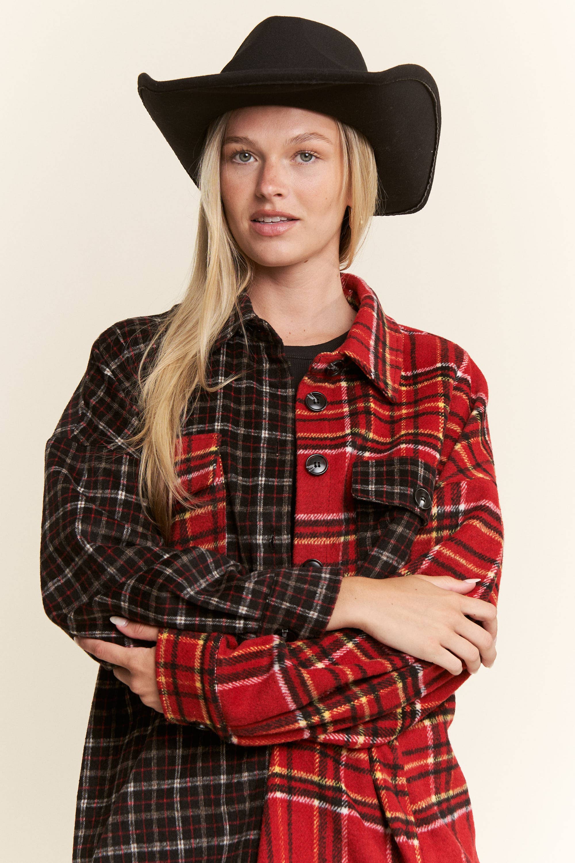Fuzzy Plaid Teddy Jakke JJO1021