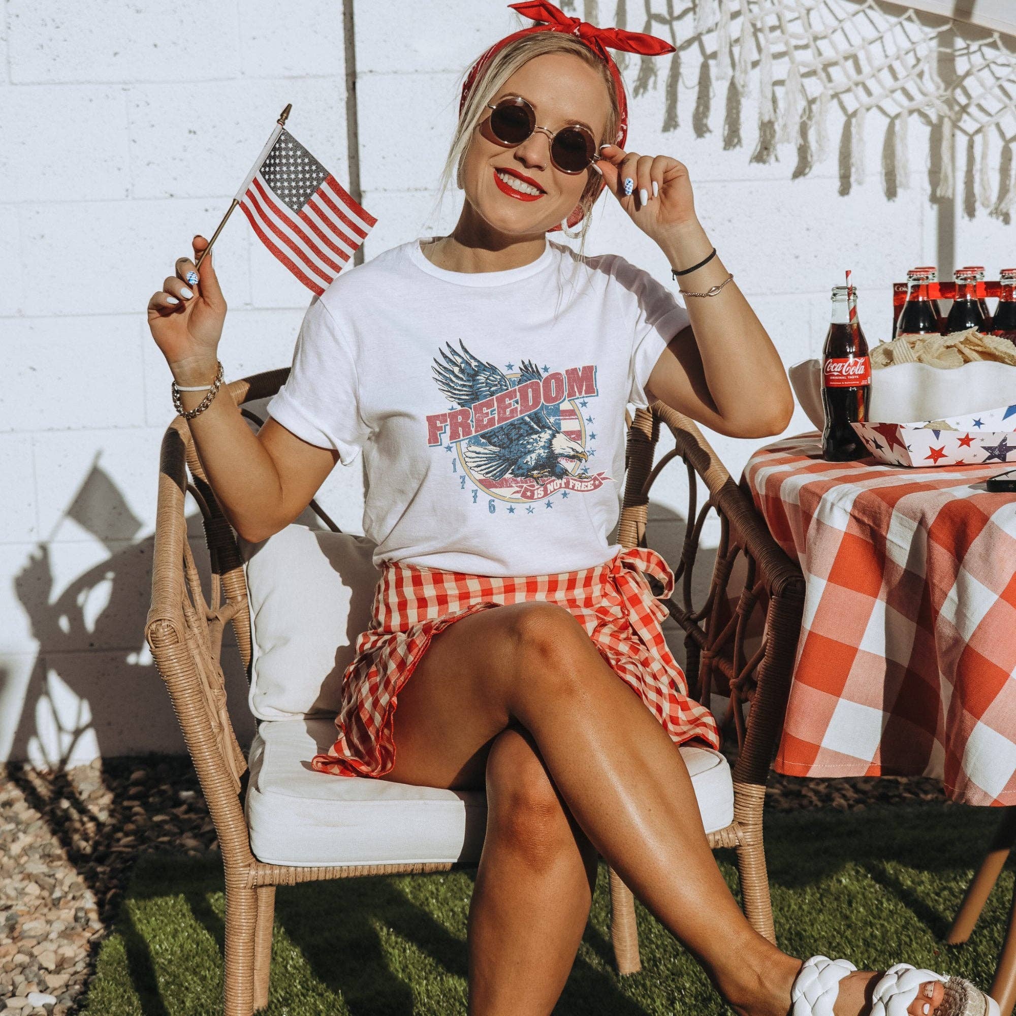 SKU: RLOTFT-WS-S-17836-S Fremstillet i USA Anledning: Fest om dagen og Højtider Anledningstema: Hverdagsbrug, Memorial Day, og USA's uafhængighedsdag Halsudskæring: Rund hals Håndteringsanvisninger: Maskinvask Mønster: Grafik Pasform: Missy og Plus size Stil: Casual og Retro/vintage Stof: 60% polyester, 40% bomuld Sæson: Forår/sommer Tema: Patriotisk Ærmelængde: Korte ærmer Produktsprog: Engelsk Vægt: 198,45 g (7 oz)