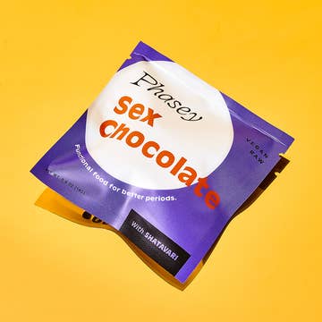 Vi tager derhen, ja lige der. Denne trøffel er tilsat organisk shatavari, et ayurvedisk urt med en lang historie som støtte for reproduktiv sundhed. Du bliver opløftet, pirret og klar til affyring mod Mars. Stress må vige. Klichéen i sin bedste form: sex og chokolade. Nyd den alene eller sammen med en partner. Husk også: praktiser sikker sex. Lavet i samarbejde med Fine & Raw Chocolate. Brug den til at støtte libido, energi og stressreduktion eller bare for at have det godt. Hver trøffel indeholder en halv teskefuld lyst. Ingredienser: Økologisk kakaobønne, økologisk kakaosmør, økologisk kokossukker, økologisk kokosolie, økologisk kakaopulver, salt, økologisk ahornsirup, økologisk shatavari. Brugsanvisning: Indtag 1-2 chokolader dagligt efter behov. For bedst effekt brug under fase 2 eller fase 3 i din cyklus.