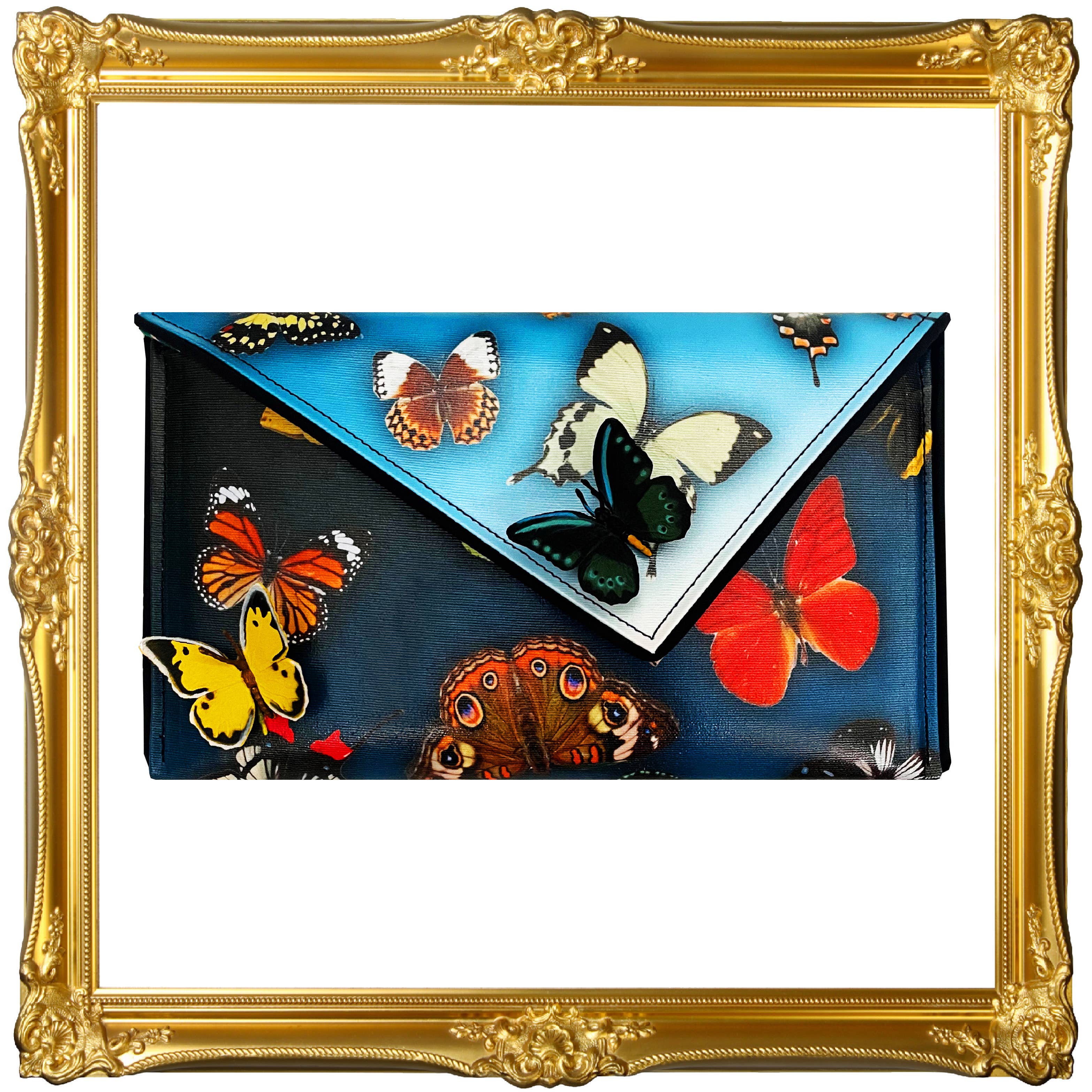 Smuk asymmetrisk clutch med et dryppende gulddesign. Grusomhedsfri, lavet af belagt lærred i luksuriøs kvalitet. Alle tasker leveres med en aftagelig tværgående kæde, logostøvpose, klar vinylindvendig lomme og er individuelt signeret. Indvendigt stof kan afvige fra det, der er afbildet. Prisen inkluderer forsendelse. * Materiale: Belagt lærred * Dimensioner: 12 x 7 x 1 * Stolt håndlavet i USA. * Individuelt underskrevet af kunstneren.