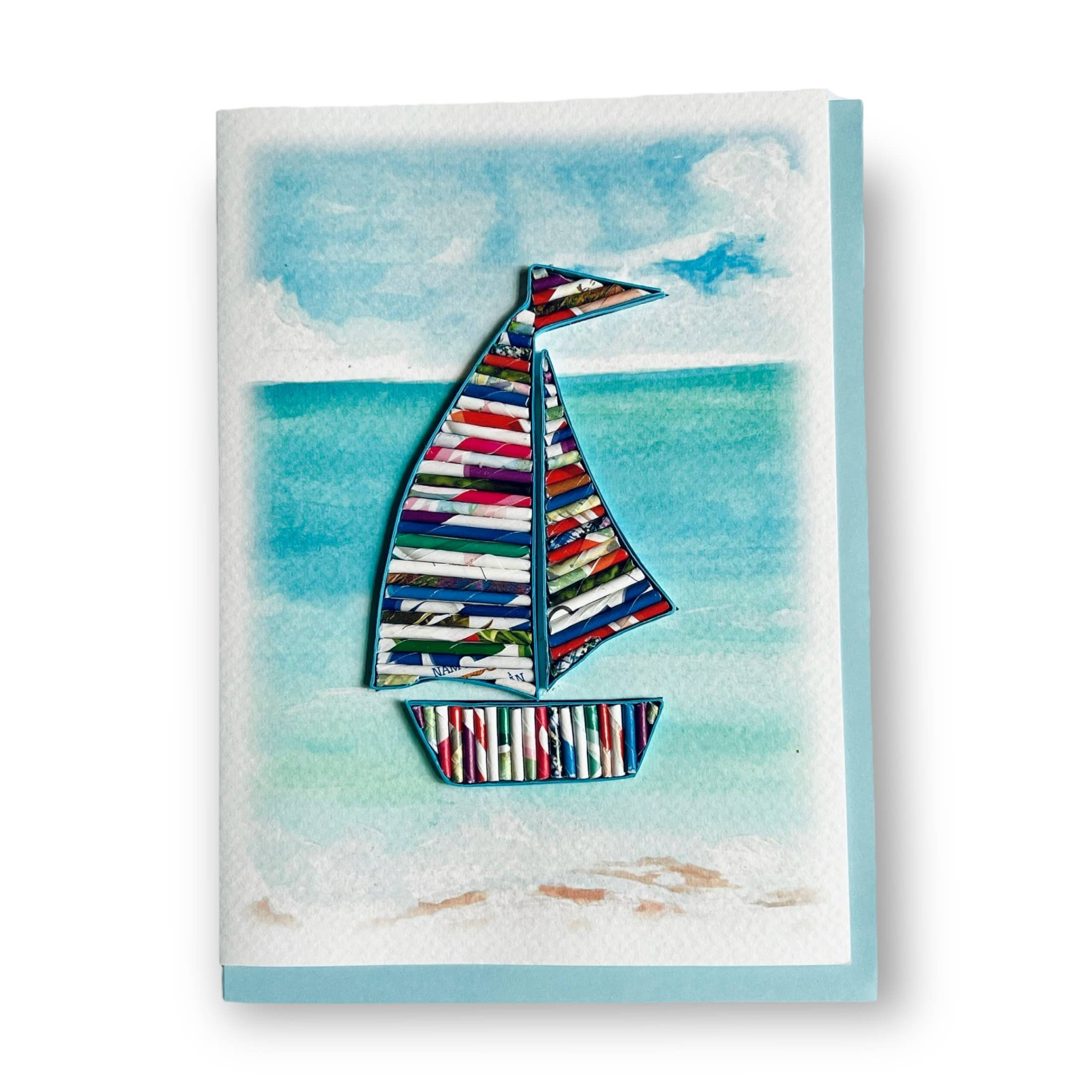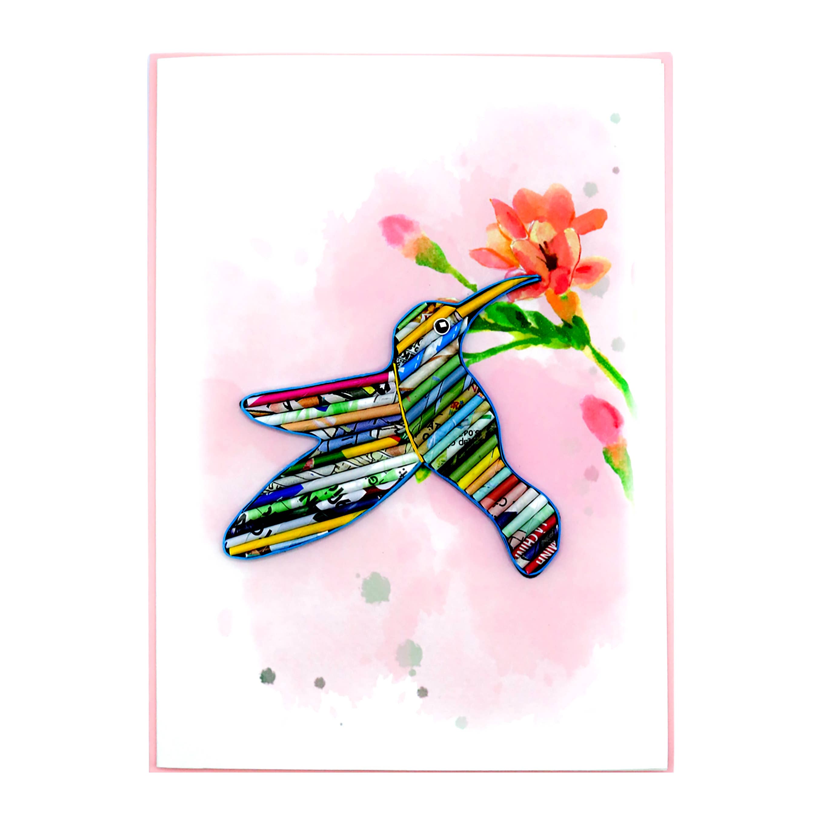 Genbrugspapirer rulles, arrangeret, og formet til en livlig delfin. Hver håndværkers unikke personlighed udtrykkes gennem det rullede papirarrangement. Kortet er håndlavet og ingen to er nøjagtigt ens. Lykønskningskortet er miljøvenligt. Køb af genbrugspapirkortet, og bringe job og glæde til unge og kvinder med ulemper i Vietnam. Produkt: Den indvendige kopi er tom. Du kan skrive din egen besked Størrelse: 5 tommer x 7 tommer.
