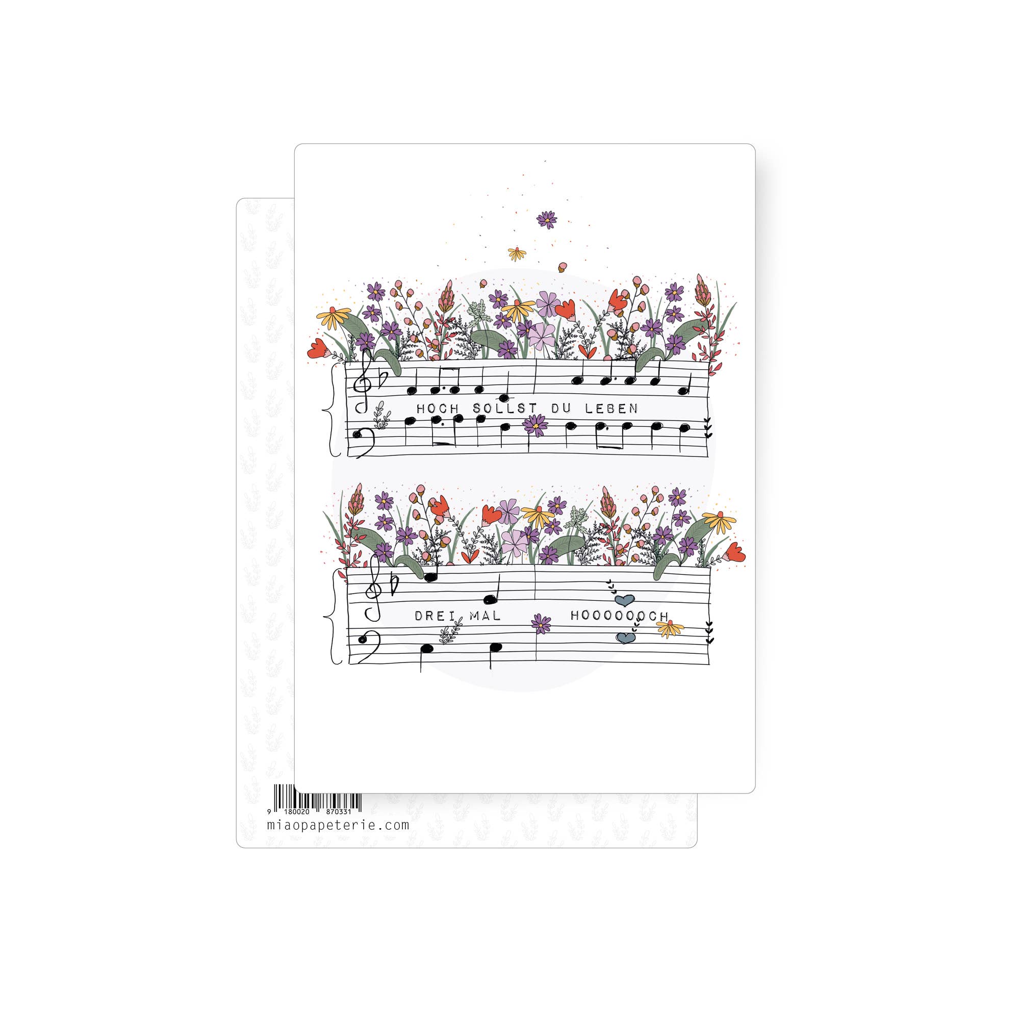 Tillykke med fødselsdagen! Et dejligt fødselsdagskort... MIAO foldet kort med kuvert pakket i komposterbar celleofan, trykt 4/0 i farver på højkvalitets Munken papir på 300 g i størrelsen DINA6. Illustreret og sammensat i Østrig, trykt i Tyskland på FSC-certificeret papir.