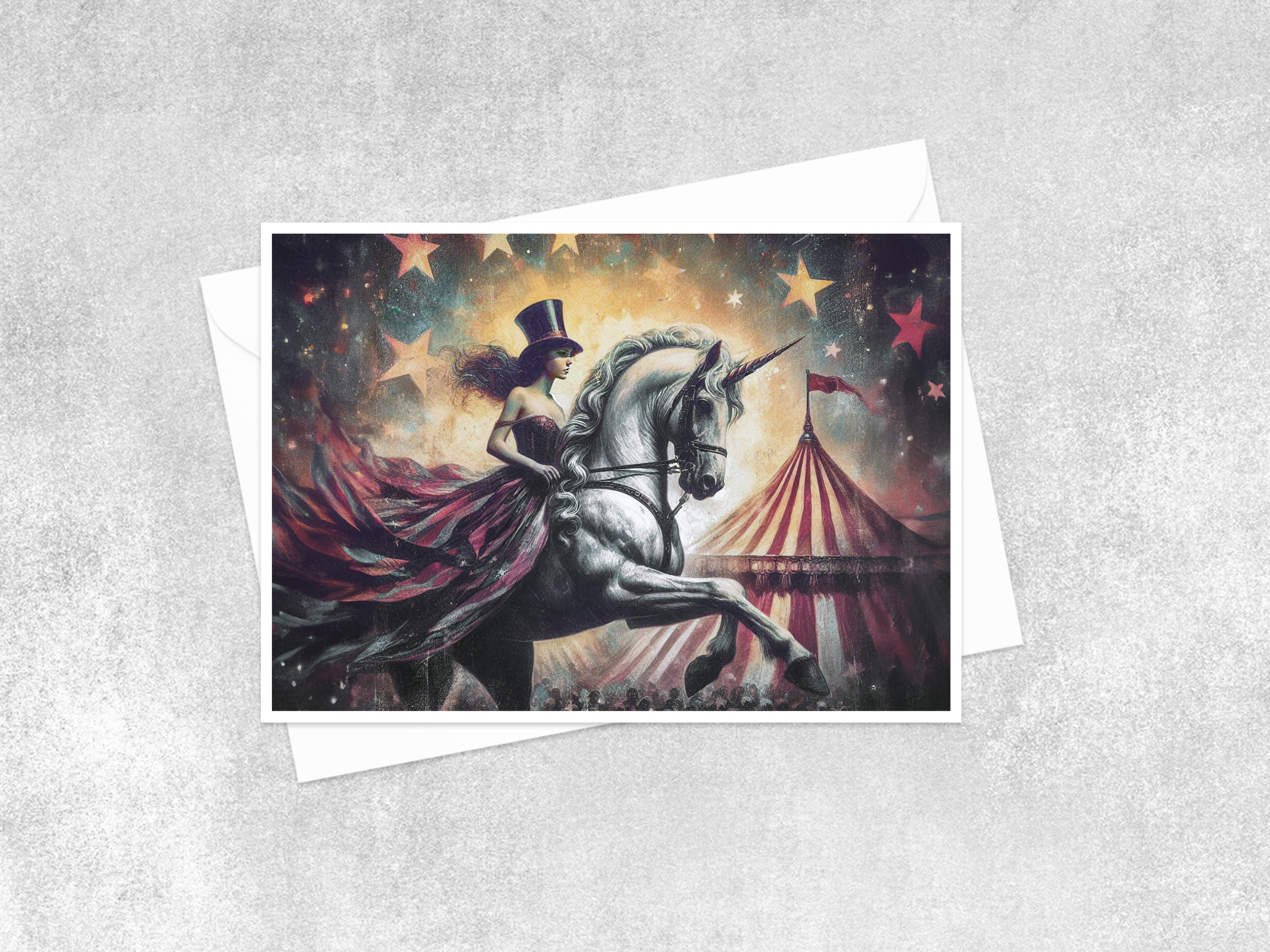Fulde navn: Vintage Stars And Stripes Circusplakat, Magisk enhjørningsindretning, Retro Sideshow Ephemera, finurlig æstetik, unik vægkunst 129RD Kunsttitel: Vintage Stars And Stripes Circus Plakat Vægindretning 129RD Tag på en fantastisk rejse med dette fascinerende print, hvor en dristig cirkusartist rider på en galant enhjørning under en stjernespækket himmel. Klædt i en patriotisk tophue og et elegant draperet, stribet kostume fremkalder kunstneren og hendes mytiske hest en levende følelse af bevægelse og teatralsk flair. Baggrunden, en hvirvel af rige røde og dybe blå, prydet med gyldne stjerner, tilføjer en magisk dimension til scenen og blander Americanas ånd med et strejf af fortryllelse. Professionelt, syrefrit kunstpapir i museumskvalitet. Pakket i en kvalitets cellopose med hvid bagplade. • 8x10 • Papirtykkelse: 10 mil • Papirvægt: 60 LB Noteringen er kun til udskrivning. (Ramme medfølger ikke.)