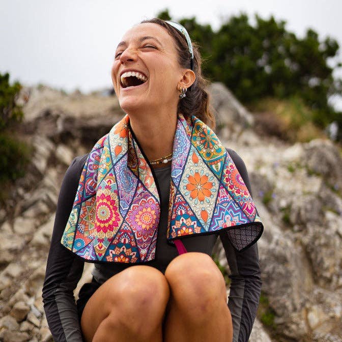 Mosaics - hurtigtørrende badehåndklæde af premium mikrofiber - behagelig på huden - 140 x 70 cm