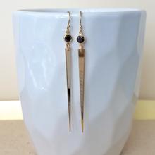 Medium længde allergivenlige guld fyldt pigge hænge fra mousserende sort Cubic Zirconia på disse edgy endnu elegante øreringe. Detaljer: 14 k guld fyldt. 4mm Cubic Zirconia. 32mm pigge.