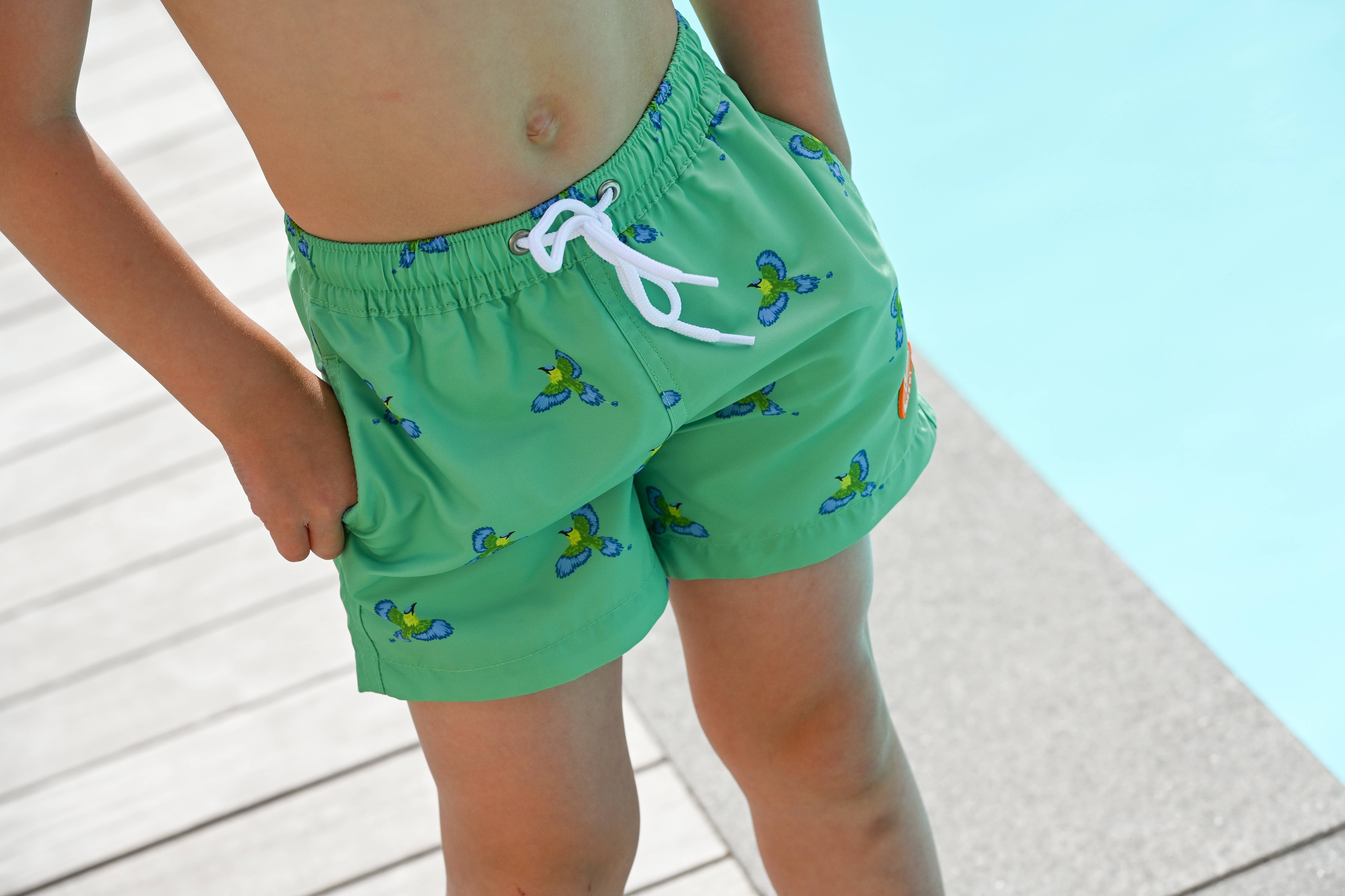 Mango Isle Trunks fra Blueberry Bay er designet til at holde dine små komfortable og stilfulde til de lange sommerdage ved vandet. Disse badeshorts er lavet af en slidstærk blanding af polyester og elastan og er perfekte til forår/sommersæsonen. De kan maskinvaskes for nem pleje, hvilket sikrer, at de forbliver friske og levende hele sæsonen. Med inspiration fra de glædelige sommerminder skabt i bedstemor Gwens elskede blåbærplaster ved bugten, legemliggør disse kufferter ånden fra endeløse barndomseventyr. Med Blueberry Bay vil dit barns sommerdage være lige så lyse og klare som selve bugten.