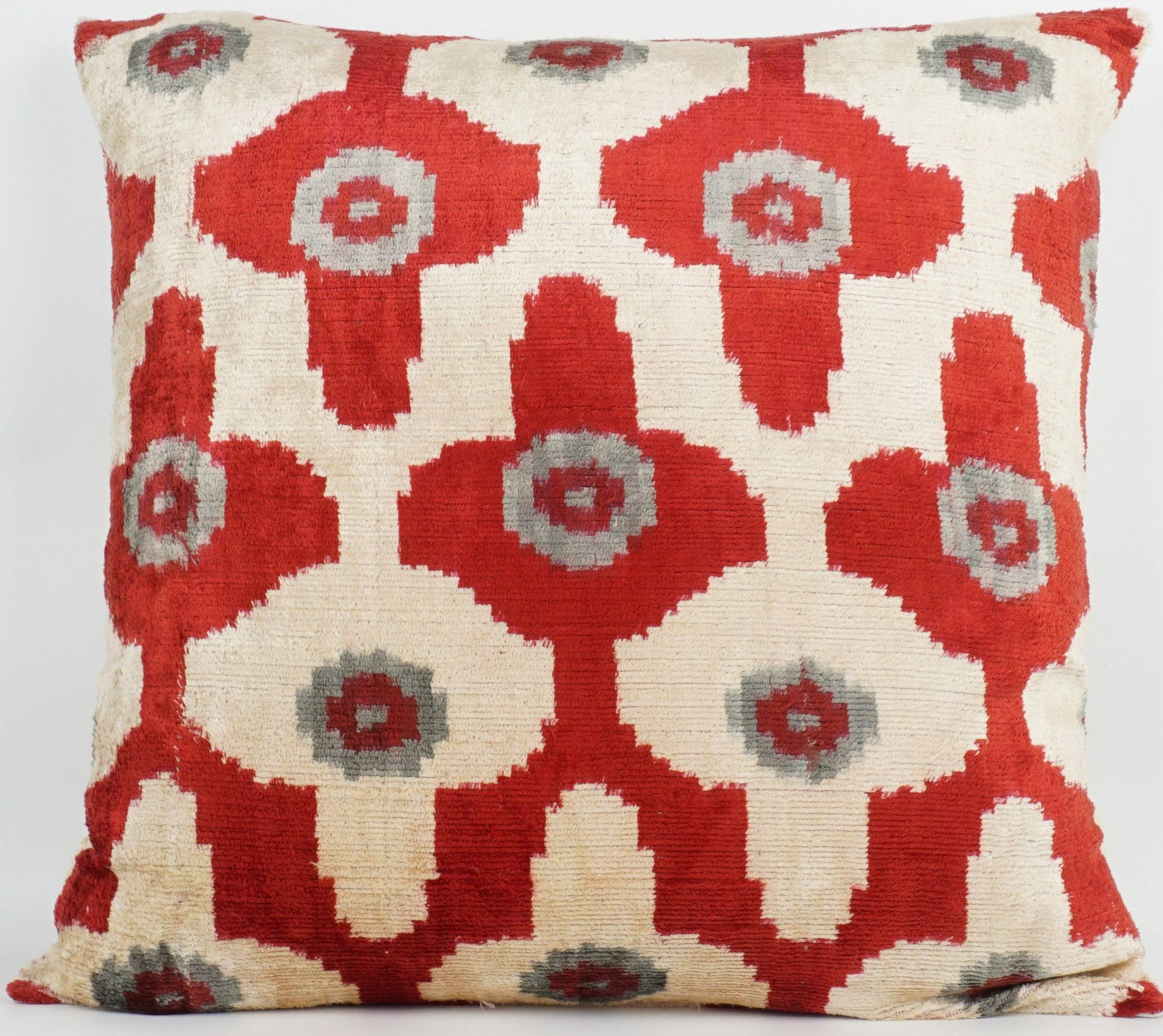 Håndlavet pude i ikat silke/fløjl 50x50 cm