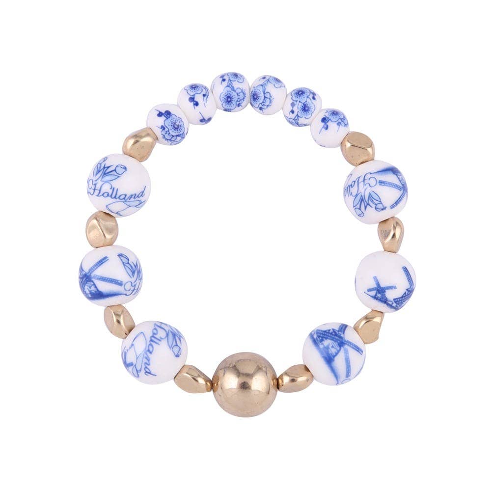 Armbånd Delfts blå med hvide perler