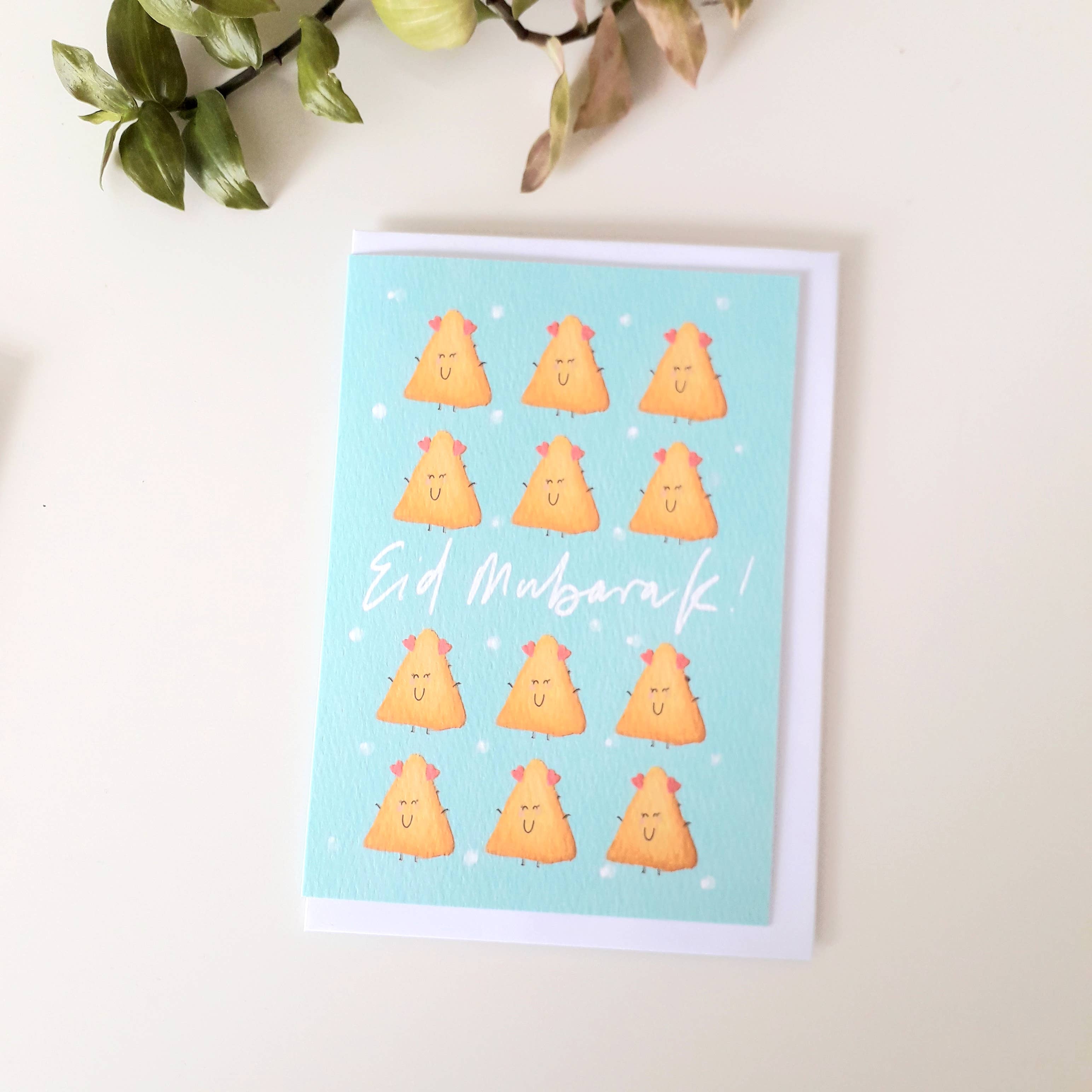 Inspireret af Desi godbidder, denne Jalebi Eid Mubarak kort er ikke kun sød, men også unik. Som med alle mine designs, dette blev digitalt illustreret af mig så garanteret at være en af en slags. Teksten selv var også (digitalt) håndskrevet. Pastel mint baggrund fortsætter på bagsiden af kortet for en ekstra flot finish. Andre funktioner: - trykt på luksus, tekstureret karton - blank indeni - størrelse A6 - hvid skræl og sæl kuvert