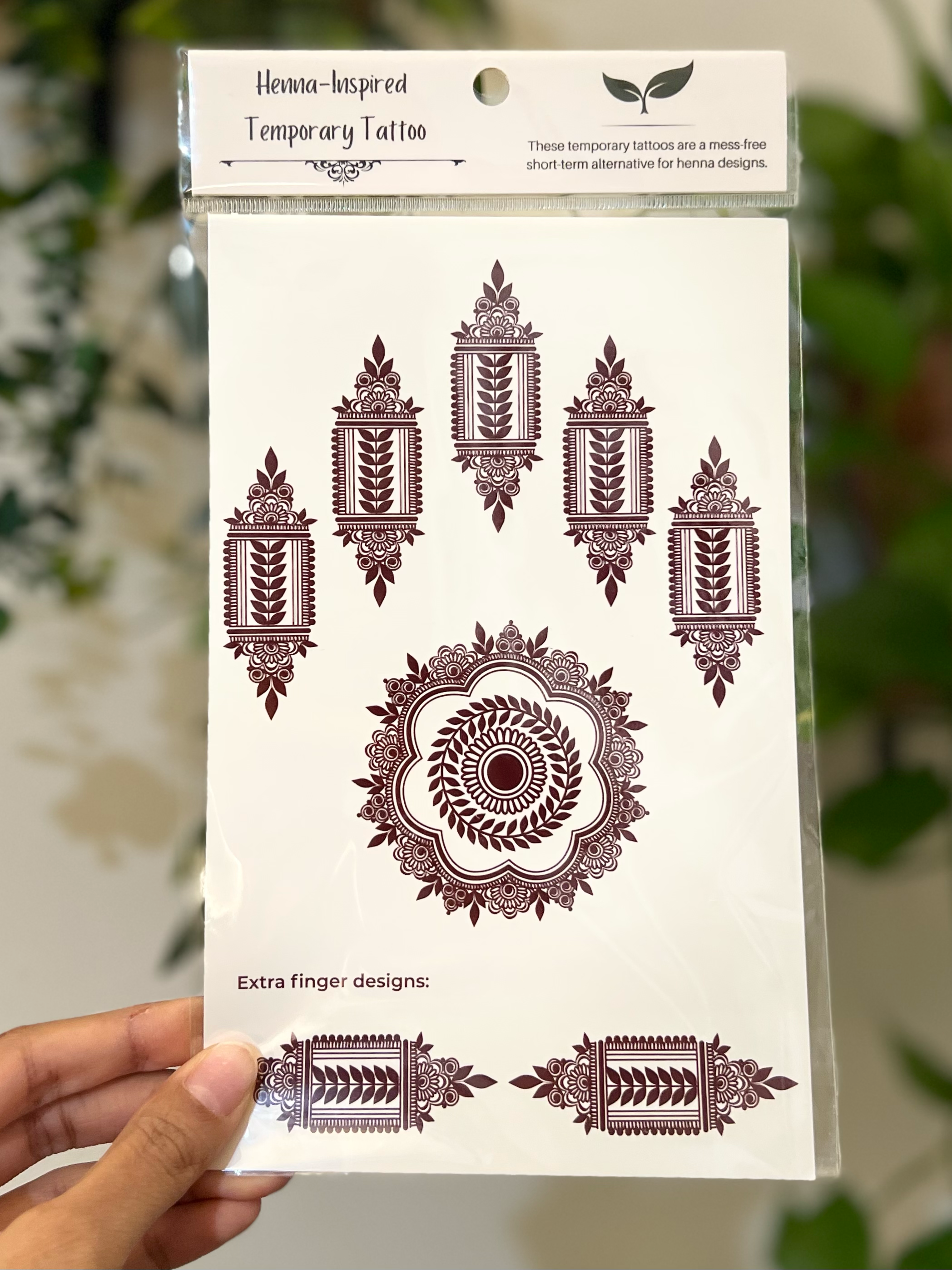 Bulbul er et blomsterdesign med matchende fingerstykker og et håndledsdesign. Match dette med Nargis for en matchende mor og mig sæt. Dette er et designark er til begge hænder! Transformer straks dine hænder ved hjælp af vores midlertidige henna-inspirerede tatovering. Dette er en original henna.squared design skabt med dig i tankerne! Ansøgningen er nem og hurtig! * Klip designet ud, så du kan placere det korrekt * Placer designet på ren hud * Våd ryggen med en fugtig klud eller svamp i 15-20 sekunder * Fjern langsomt papiret for at sikre, at designet er overført Voila! Du har nu et øjeblikkeligt originalt henna-design på din hånd. Fordele ved vores Instant Henna Tattoo: * COVID-venlig - du kan anvende et originalt henna-design på egen hånd uden at forlade dit hjem eller være i tæt kontakt med en anden person * Børnevenligt - dette produkt er fantastisk til mødre, der ikke har tid til at vente på, at henna påføres og tørre * Hurtig, nem og ingen ventetid - væk er t...