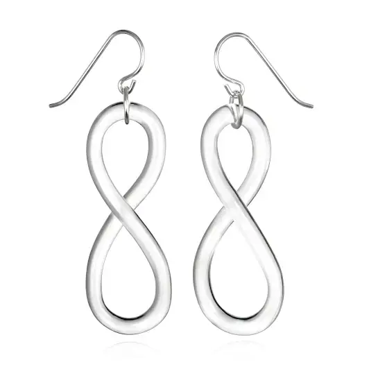 Dimensionel spiral ørering er lavet ved omhyggeligt at forme en glasstang i en 2.000 graders flamme. Glasset styres forsigtigt ind i en spiral ved hjælp af varme og tyngdekraft. Lavet med borosilikat (pyrex) glas, levetid garanti. Fisk krog øre wire og hoppe ring er sterling sølv. Ca. 2 „x 0,75".