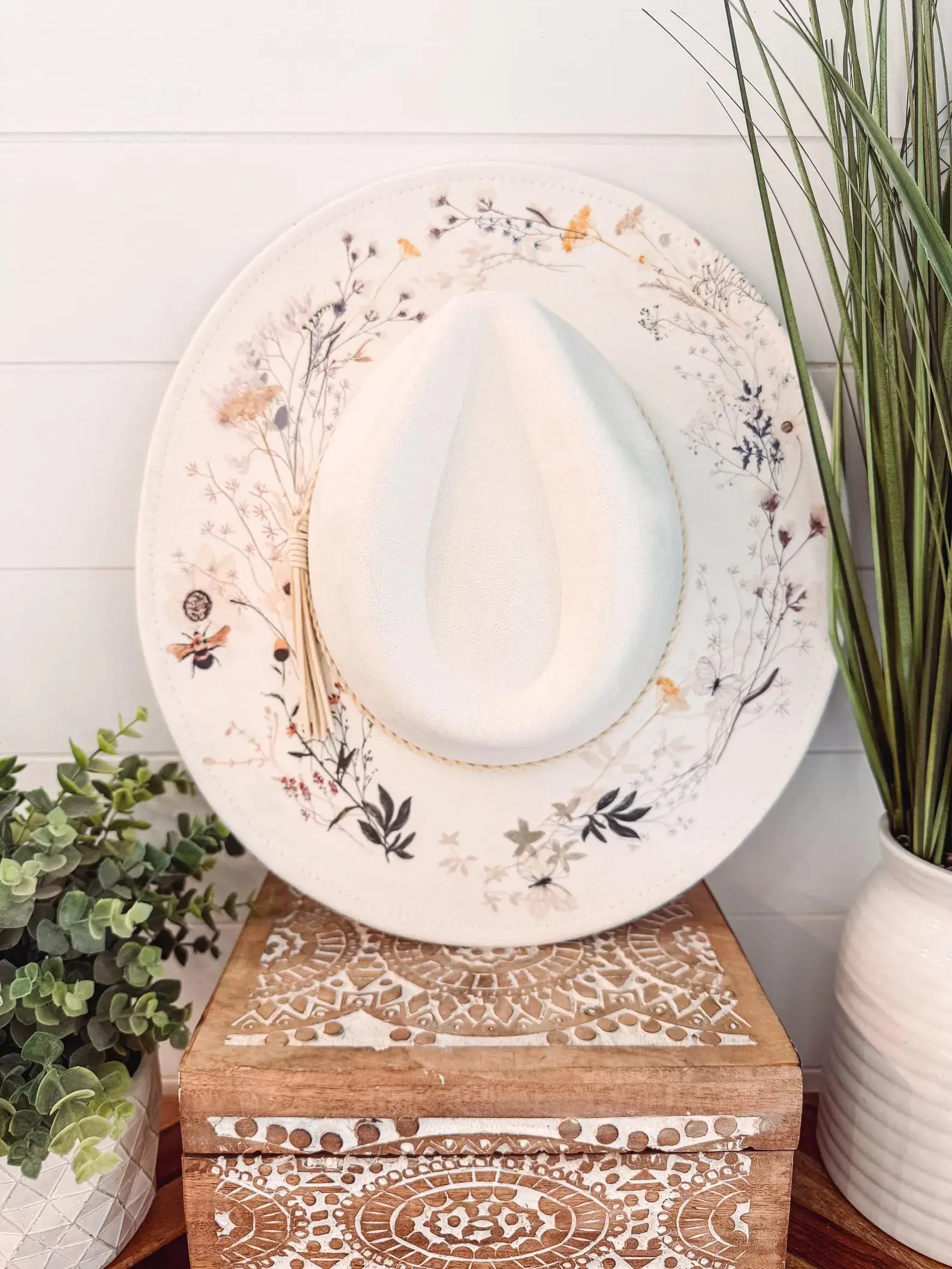 Blomsterprintet Hat, Blomster Cowboyhat, Solsikkehat, Vildblomst Fedora, Blomster Ruskindshat, Boho Hat, Vegansk Ruskind, Cowgirlhat, Bredskygget Hat Løft din stil med vores smukt printede hatte! Hattene har en justerbar snor, der passer til alle størrelser fra barn til voksen. De passer 20-24,5"