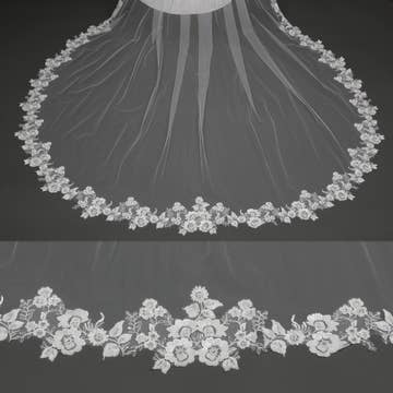 FS6230 Blomster Vin Broderet Blonde Brudeslør 42" 54" 120"