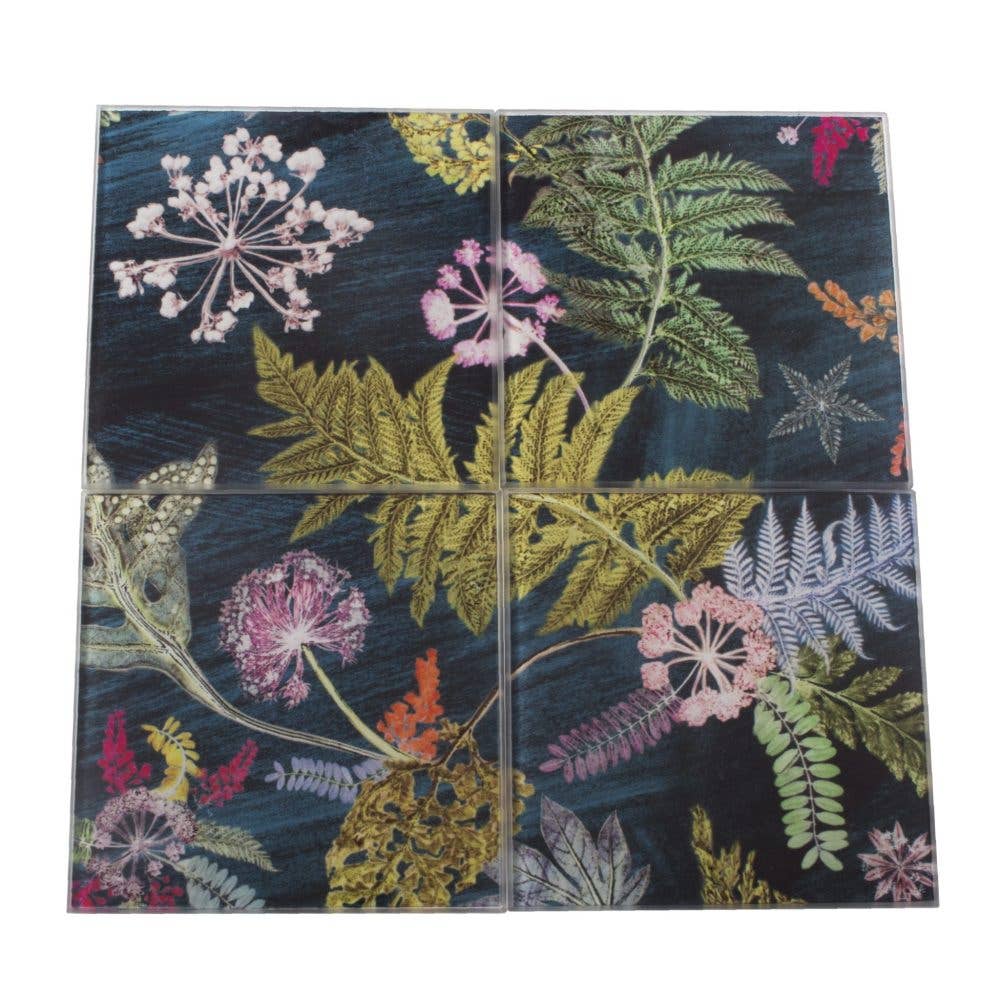 Disse glasunderlag har Gillians bedst sælgende botaniske alfabet, så du kan oprette personlige brevgaver - køb coastere med hver af din families initialer eller stave dit efternavn eller inspirerende ord for at dele ud med en kop te eller kaffe! Når de er arrangeret sammen, danner de et design, men er lige så behagelige at se på og bruge, når de opdeles i individuelle underlag. Glasset giver dem en juvellignende kvalitet med en 3D-effekt, når du kigger gennem glasset på designet. Hver coaster er 10 cm firkantet og lavet af et hærdet/brudsikkert glas med 4 gummifødder.