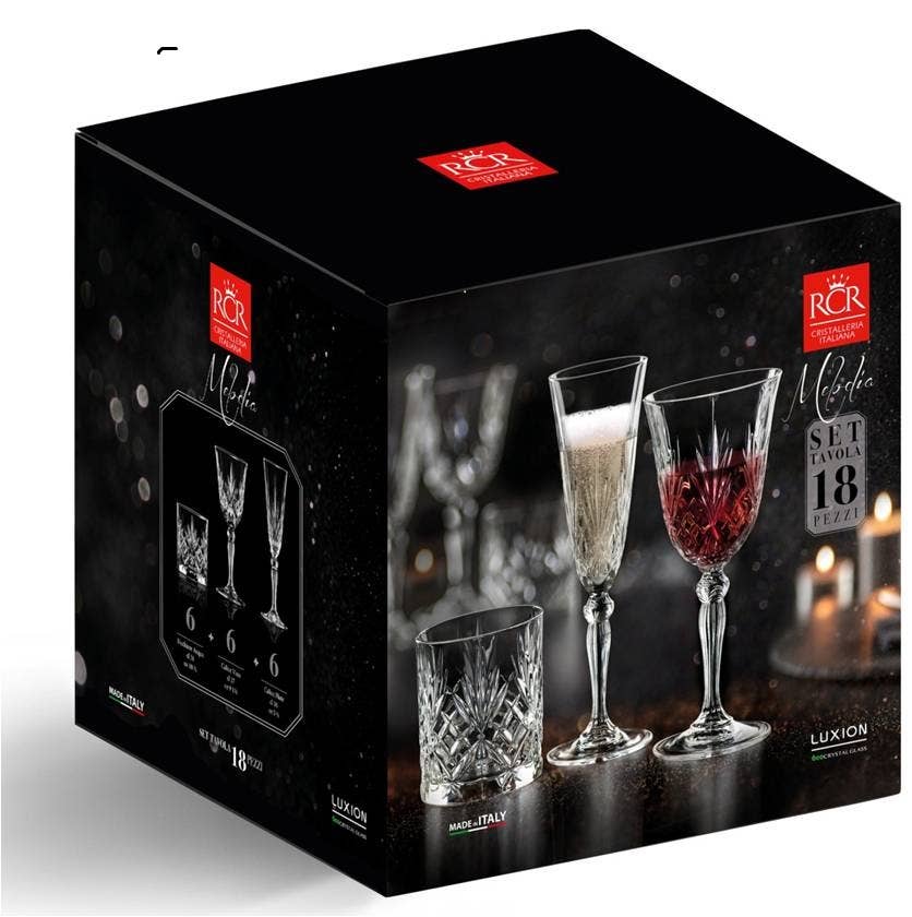 Tilfør dit hjem, bar eller spisebord en iøjnefaldende italiensk stil og håndværk med dette Melodia rødvinsglas fra RCR. - Fremstillet af RCR's LUXION® glas: ultraklart med en skinnende glans, brudresistent og 100 % genanvendeligt - Udsmykket med ornamenteret slebet mønster, der giver tidløs elegance til ethvert bord - Mål: kapacitet 270 ml, bredde 9 cm, dybde 9 cm, højde 20 cm - 2 års garanti med dedikeret kundeservice, som sikrer dig tryghed fra os til dig - Indeholder 1 glas