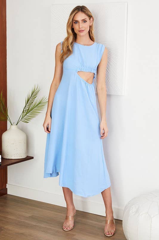 LANG KLOKKE WIDESLEEVE NØGLEHULSATINKJOLE (H1601-TURQ)