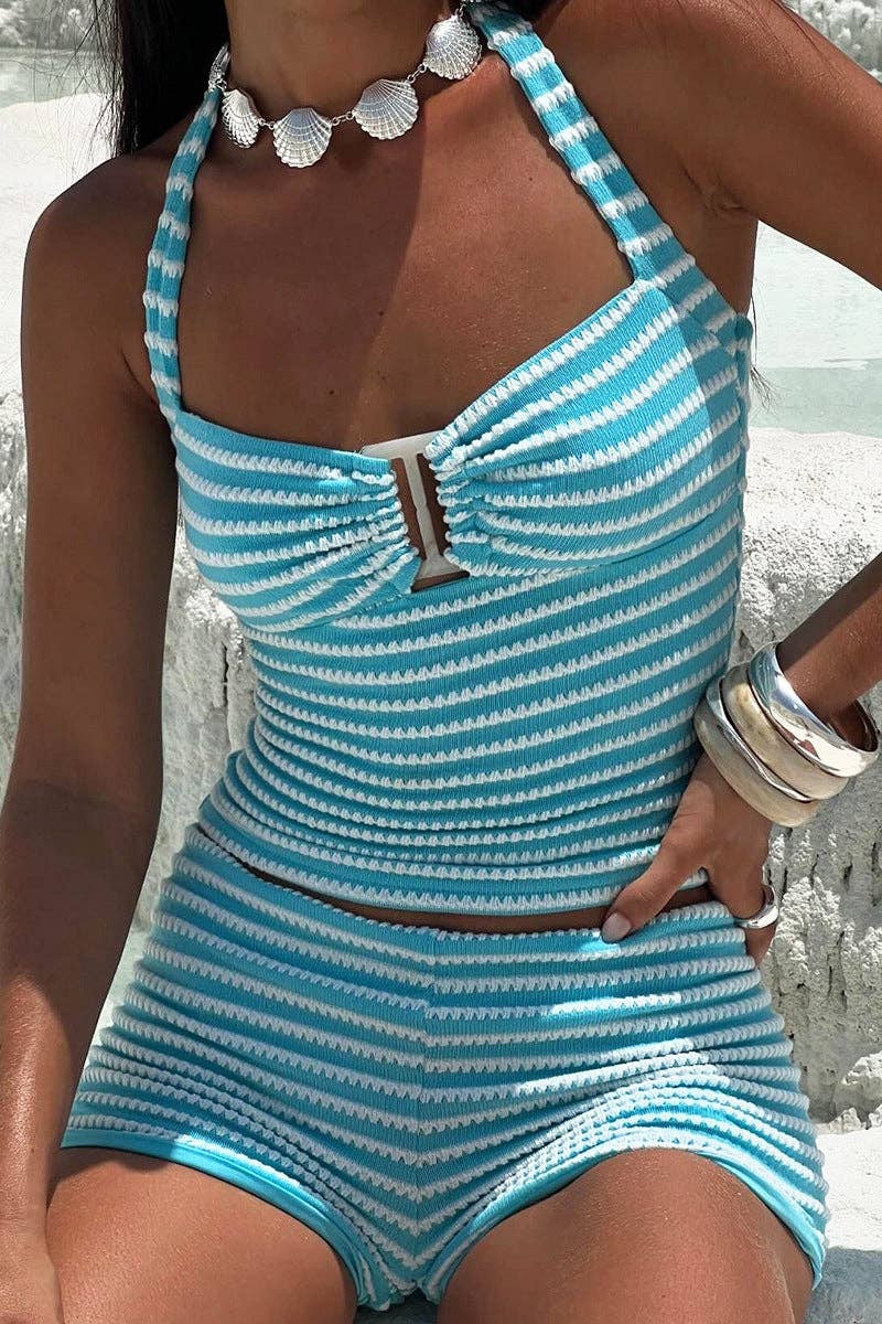 Stribet kort sæt med lange ærmer