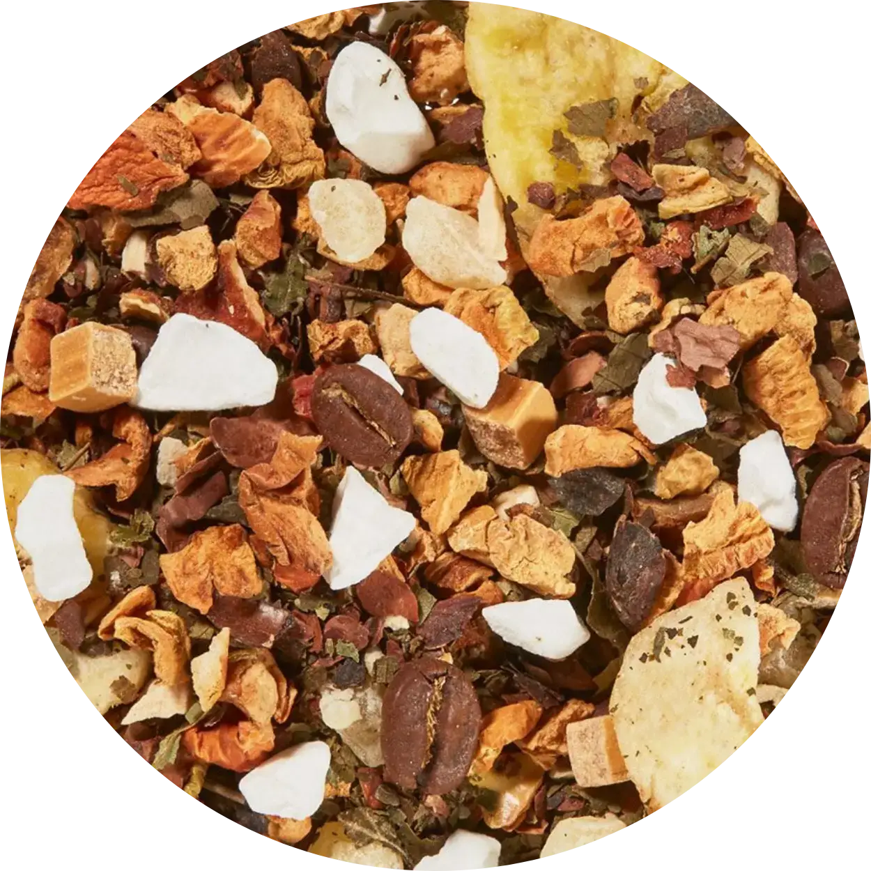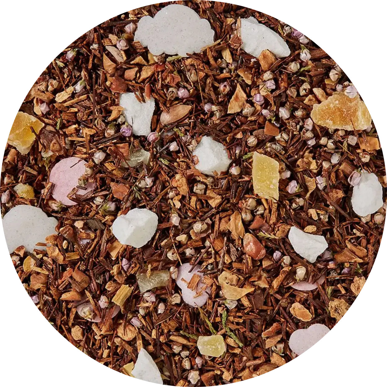 SKU: rooibpaindep50g Fremstillet i Frankrig Holdbarhed: 12–24 måneder Ingredienser: Sammensætning: Rooibos te, mandelflager, pistacienødder, appelsinskal, koriander, aroma, lyserøde peberkorn Opbevaring: Langtidsholdbar Produktsprog: Fransk Vægt: 50 g (1,76 oz)