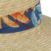 Denne tofarvede hat i papirsugerør har et grosgrain-bånd og en matchende flad sløjfe. Den findes i flere modeller og er perfekt til hele sommeren, uanset om du nyder en drink på en terrasse eller går en tur på landet. Kompletter din ordre med matchende varer 2ES205 og 2ES206. Størrelser: Fra S til XL Farver: Beige, blå, pink Materiale: 100 % papirsugerør