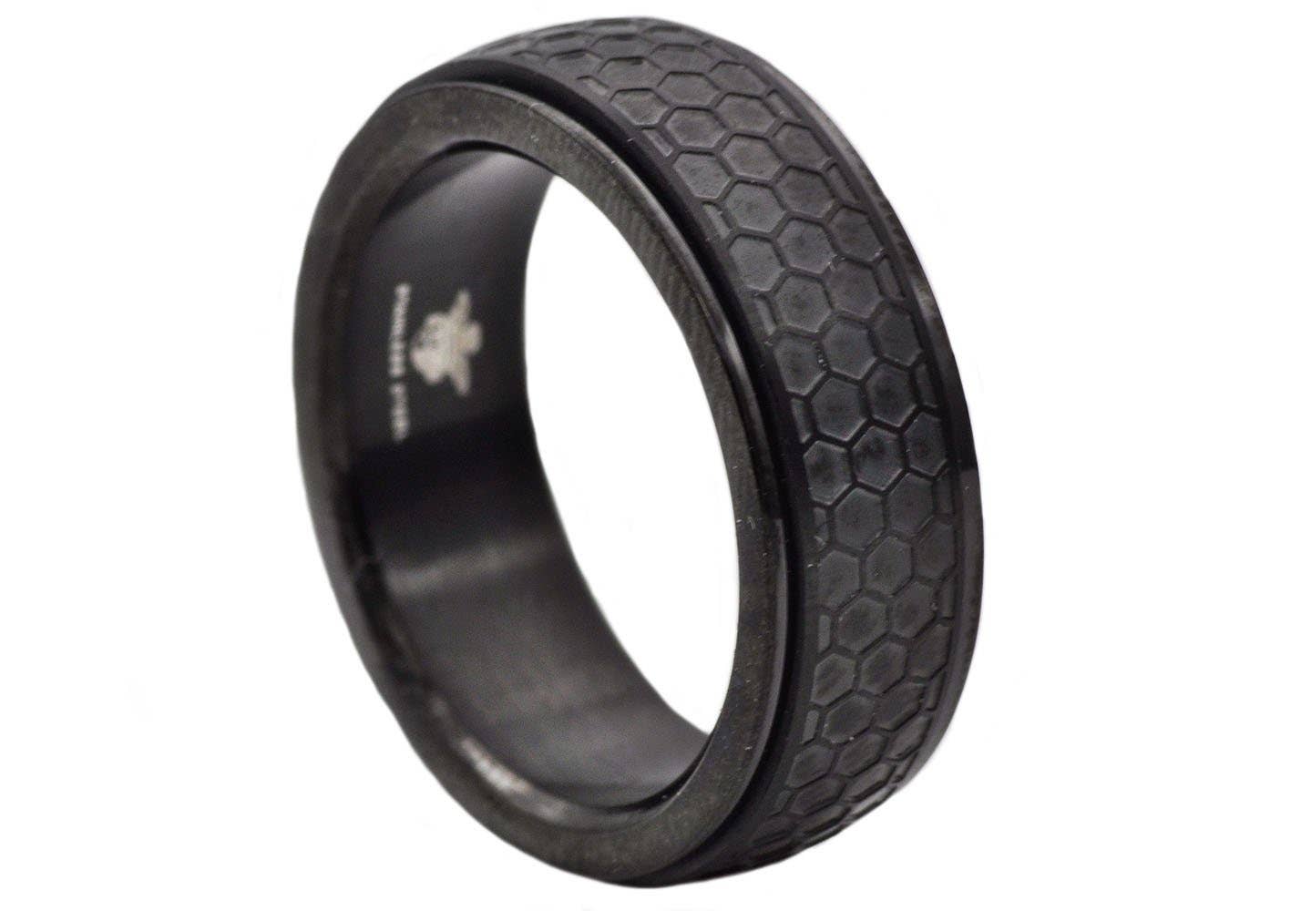 Mænds 10mm sort rustfrit stål kæde Spinner Ring
