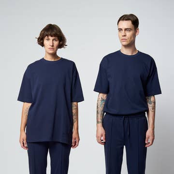 Fremstillet i Frankrig, i en sort bomuldsdril, 97% bomuld, 3% elastan, 312g/m², fra et modehus' restlager. Solène er 1m70 og bærer en størrelse 1, Paul er 1m85 og bærer en størrelse 3.