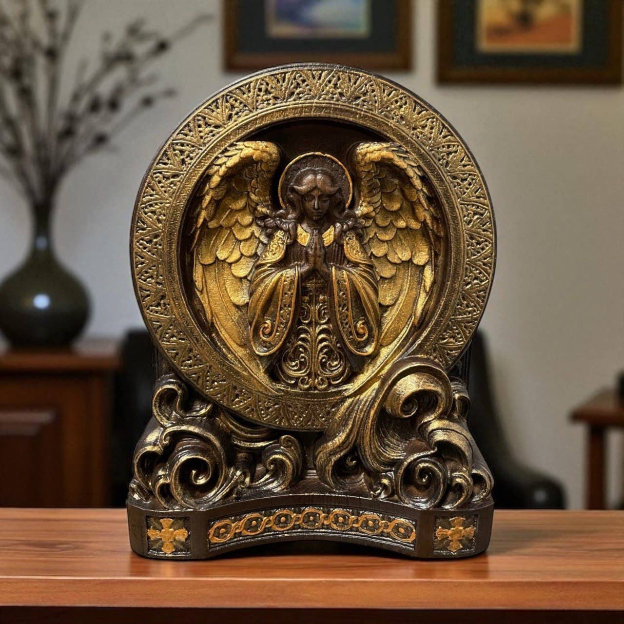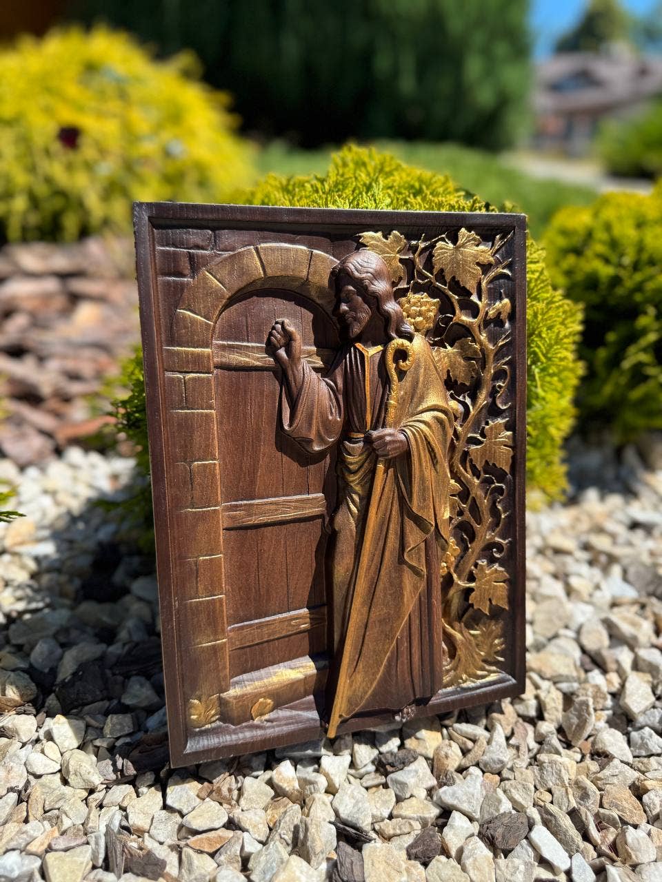 Løvehoved firkantet træskåret plade kristen dekoration