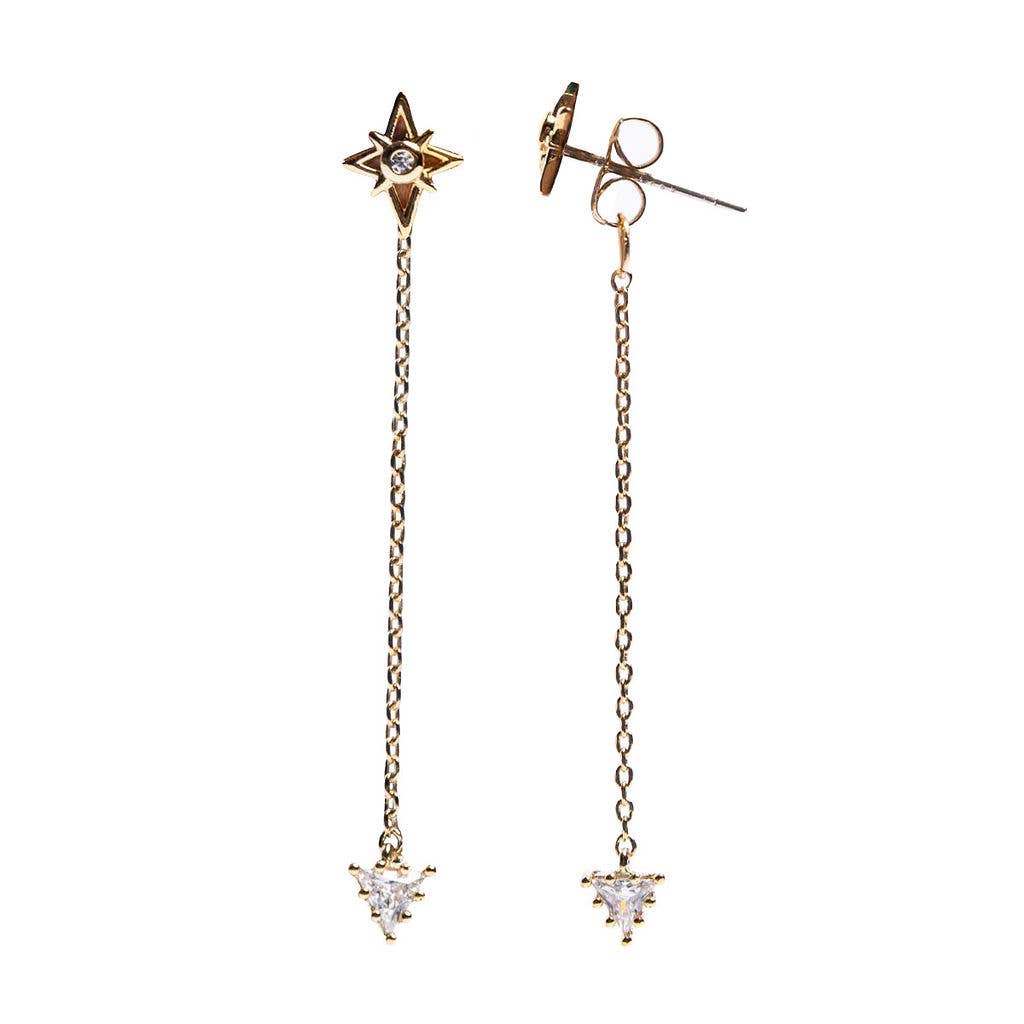 Elsker blandede metaller i smykker? Rør op nogle glitre i disse guld frynser, sterling sølv resultater og cubic zirconia dråbe øreringe. Sexet og næsvis. * Sterling sølv øretråd og finde * Forgyldt frynser *Cubic Zirconia * Alle øreringe kommer på repurposed læder for nem og elegant skærm