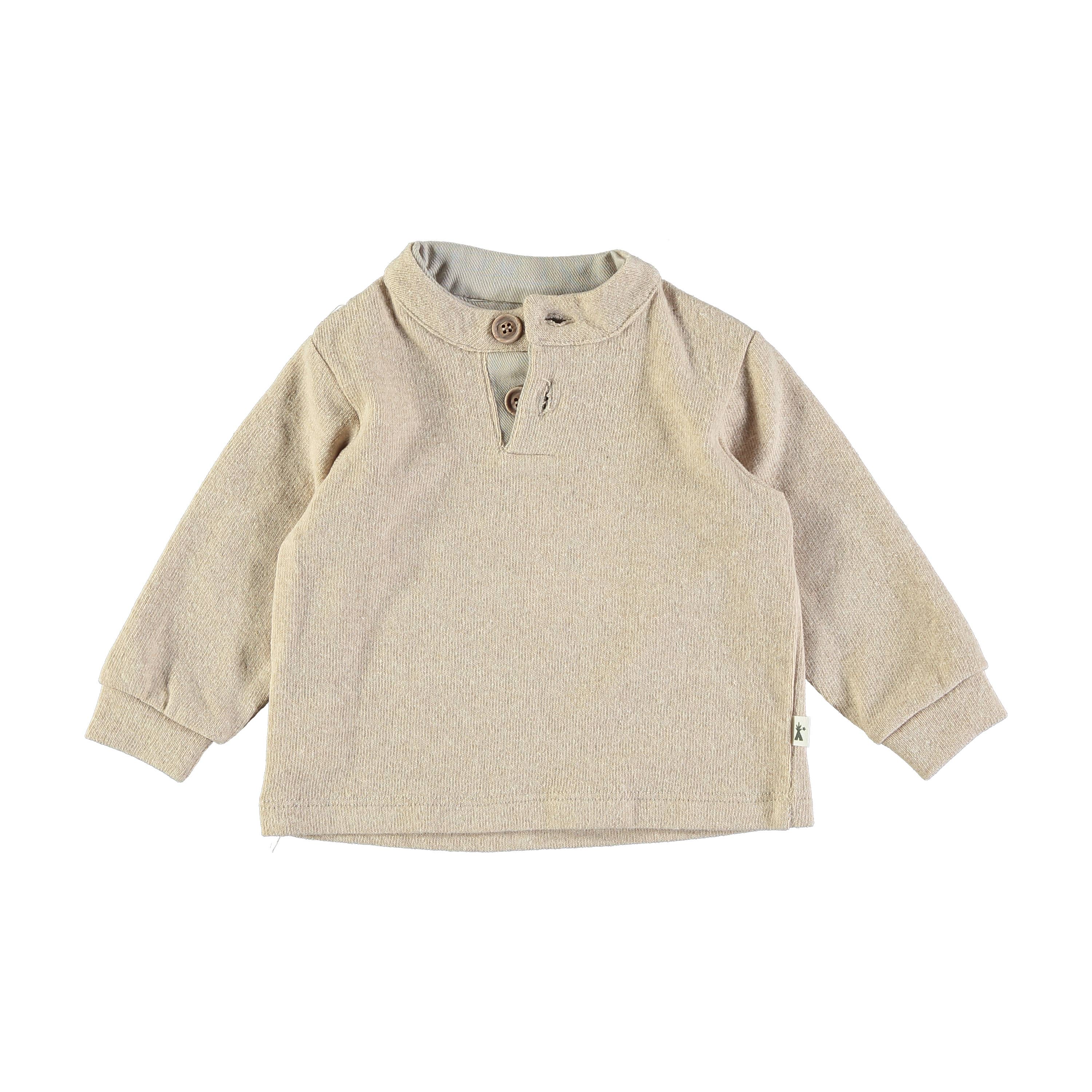 100% økologisk bomuld strikket raglan design sweater til baby. Pullover sweater med kokos shell knap detalje på begge sider af halsen. Yndig bittesmå forlommer. Klassisk og yndig design med omhyggelige detaljer. Blød, letvægts, all-season og comfy. Miljøvenlige, kemikaliefrie, ikke-giftige, rene, naturlige og økologiske babytøj. Etisk produceret i Indien, der understøtter bedre levebrød for små avlere landmænd.Etisk produceret i Indien, der understøtter bedre levebrød for små avlere.