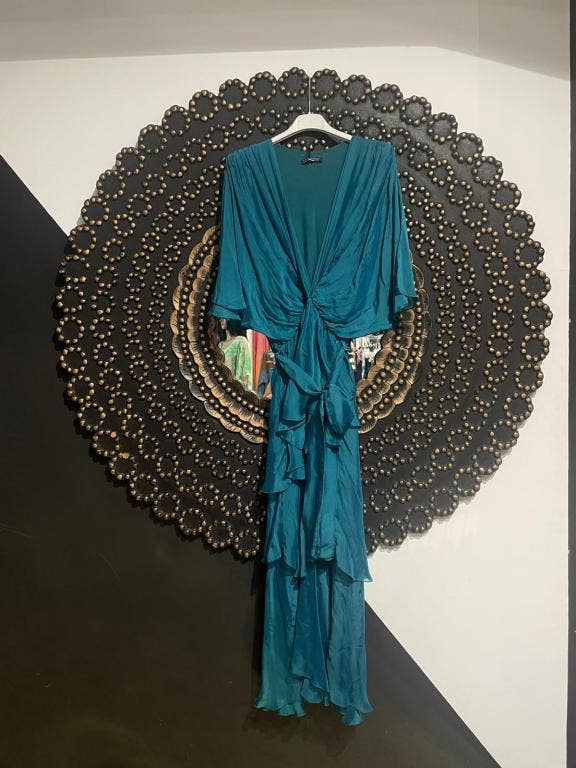 Italiensk silke lang kjole med front åbning. Kvinders mode