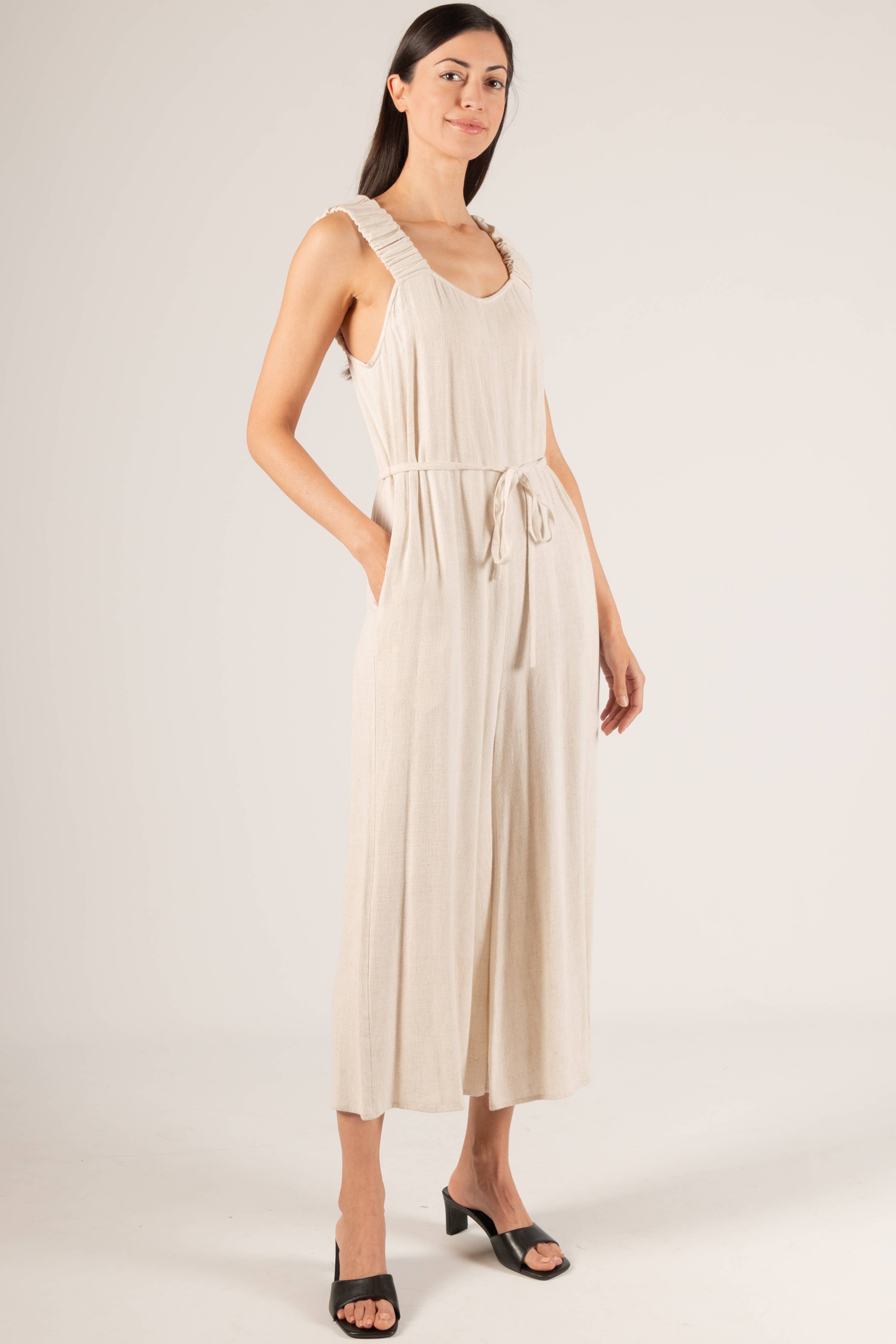 Elegant og sofistikeret, denne tætsiddende jumpsuit med lange ærmer tilbyder en fejlfri blanding af stil og komfort. Den strømlinede silhuet og forlængende design skaber et smart, poleret look, hvilket gør den perfekt til både afslappede udflugter og formelle lejligheder. Detaljer: - 48% Modal, 48% Polyester, 4% Spandex - Rund halsudskæring - Lynlås bagpå - Lange ærmer - Ankel længde Stil nr. PJP90066 Materiale: 48% Modal, 48% Polyester, 4% Spandex