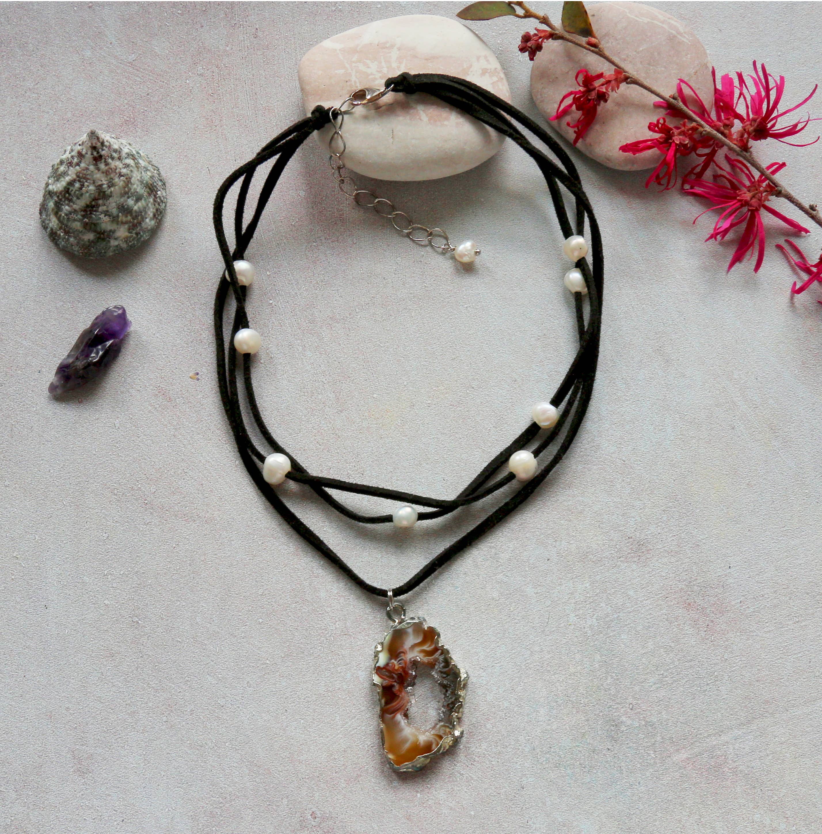 Larimar og læder halskæde.