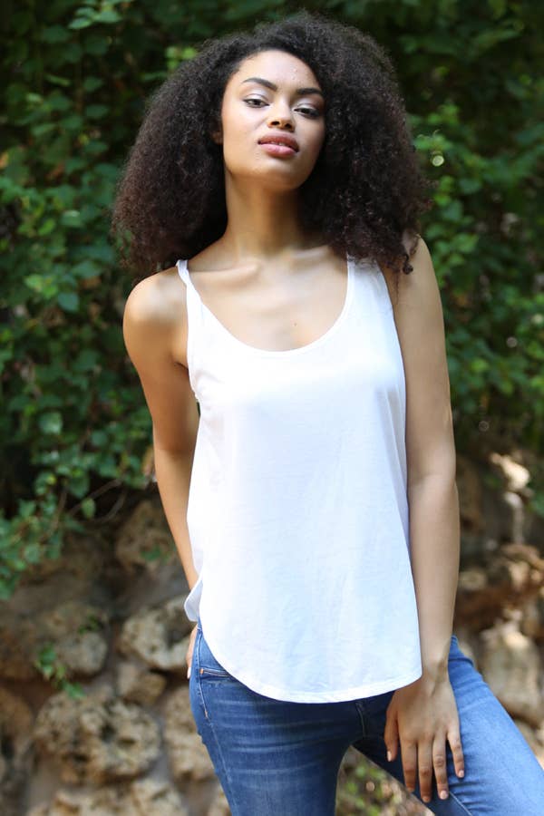 Vores X2T72-ASIS V-hals Swingy Tank Top med åben ryg er en unik repræsentation af Angies etos - en blanding af global livsstil med boheme og vintage påvirkninger. Denne streetwear-æstetiske tanktop, designet til den moderne, velrejste kvinde, har et solidt mønster, der tilføjer et strejf af enkelhed til det overordnede look. Ideel til loungetøj, dens juniorpasform og ærmeløse design gør det til et behageligt valg til strand- og kysttemaer. Omfavn den dristige, poetiske og bærbare ånd fra Angie med denne basistank.