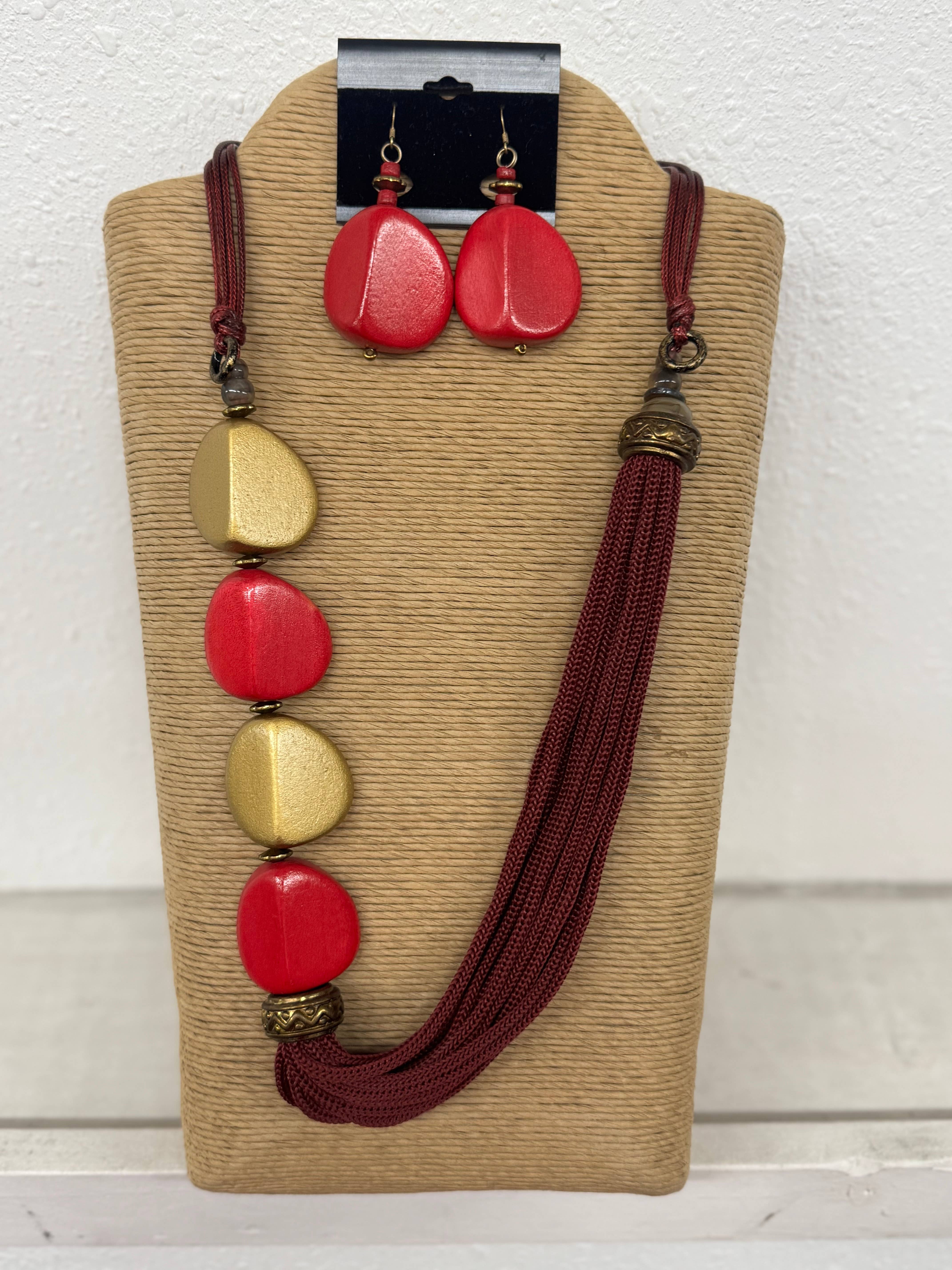 GUL JUSTERBAR VOKSNOR MED GUL FIRKANT OG DRÅBEHARPIKS HALSKÆDE SÆT 24040