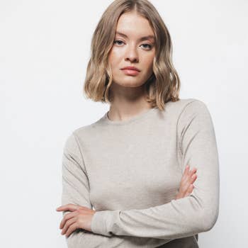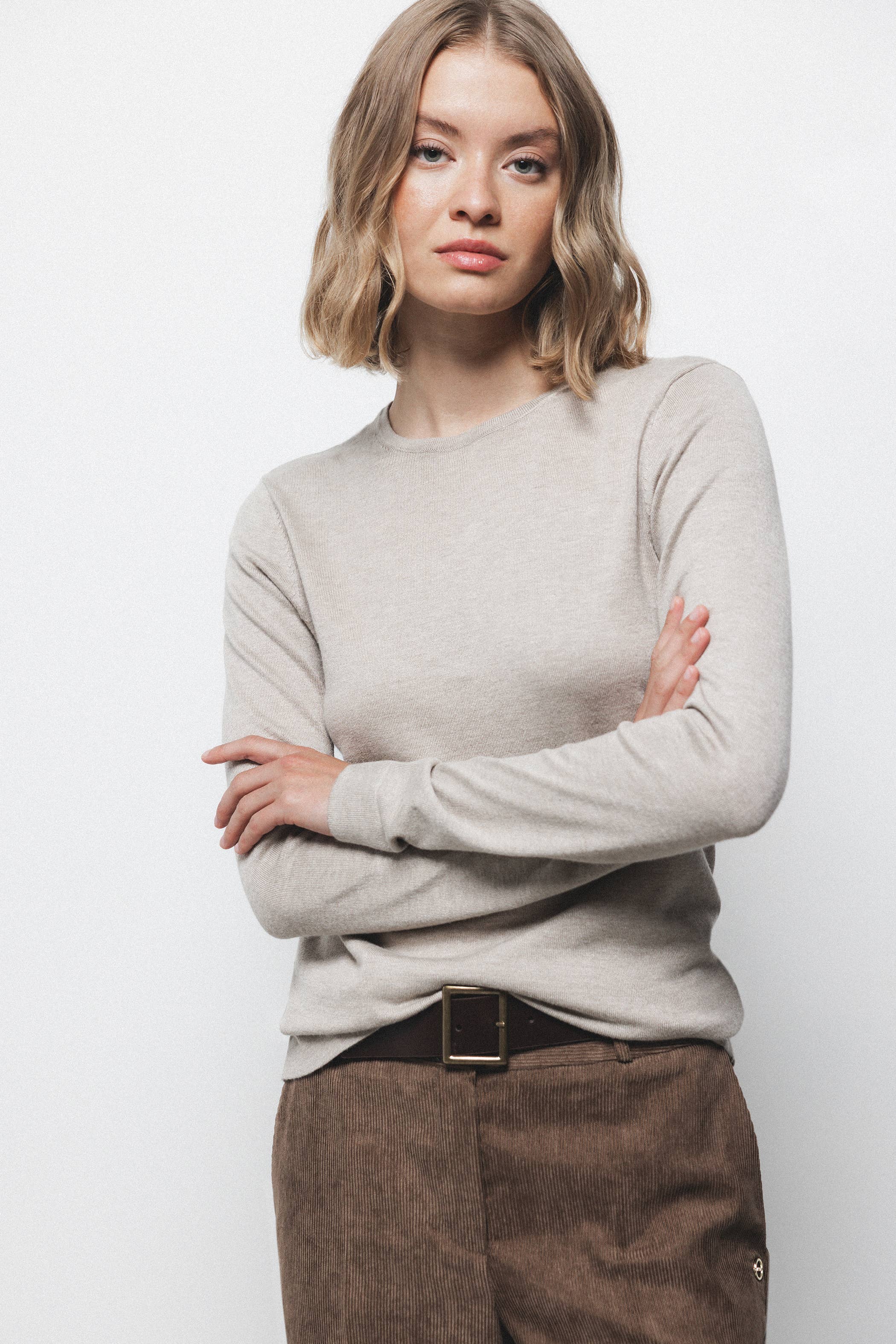 W1536 | Strikket bomuldstrøje med rib og rund hals, langærmet pullover