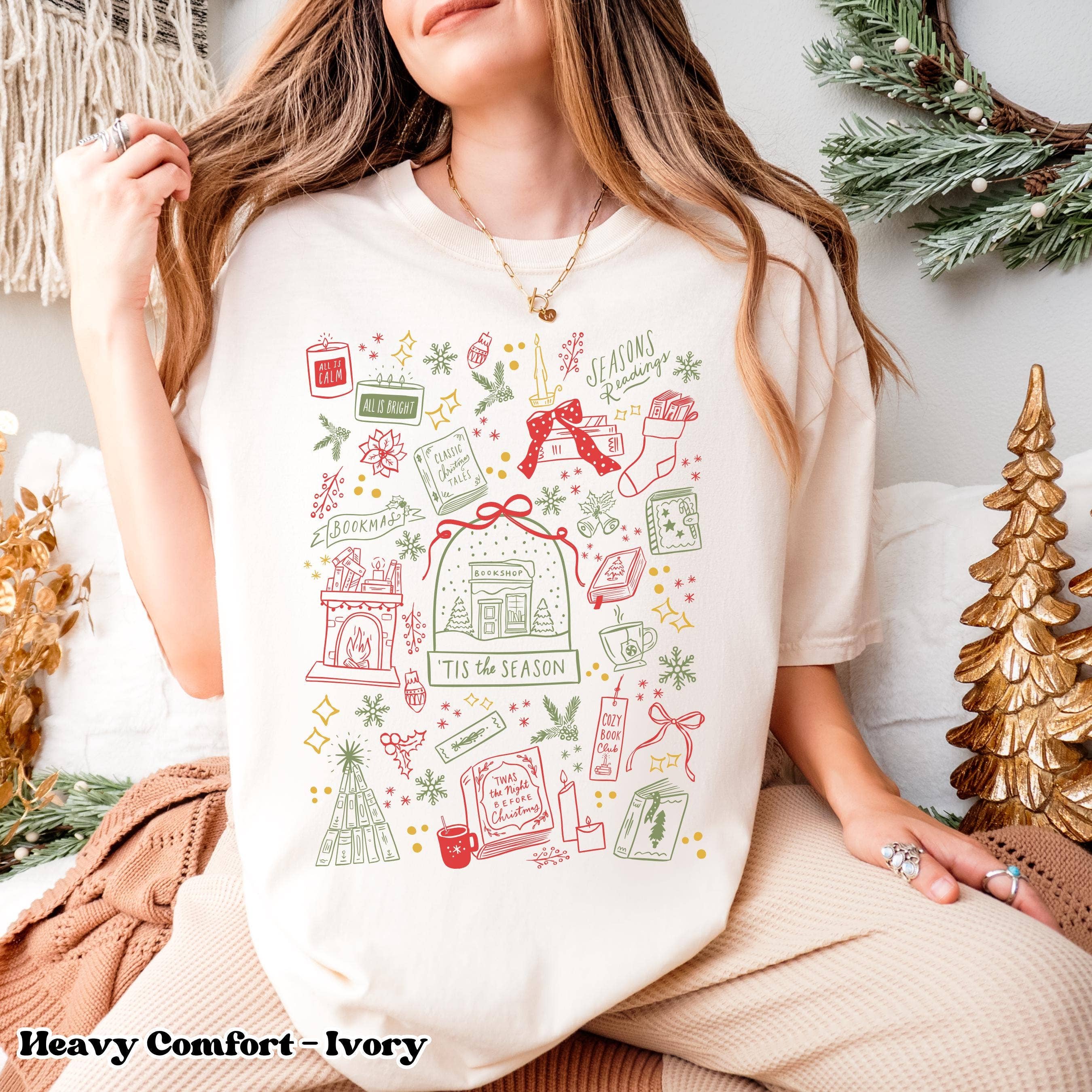 Julebogtrøje, Comfort Colors boglig juletrøje, gave til bibliotekar, bogorm jule-T-shirt, bogelsker gave 🌟 Der er 2 forskellige trøjevalg tilgængelige i denne liste. Vælg venligst din foretrukne stil omhyggeligt, når du bestiller 👕 Comfort Colors Unisex T-shirt (Comfort Colors 1717) - 100% bomuld - Medium stof (6,1 oz/yd² (206,8 g/m²)) - Tilgængelige størrelser: S, M, L, XL, 2XL, 3XL 👕 Comfort Colors Unisex Sweatshirt (Comfort Colors 1566) - 80% bomuld og 20% polyester, og stoffet er 3-end garment-dyed, ring-spun, color-blast fleece med en 100% bomuldsflade. - Medium-tungt stof (9,5 oz/yd² (322,1 g/m²)) - Tilgængelige størrelser: S, M, L, XL, 2XL, 3XL 🌟 Vi bruger direkte til beklædningsprintteknik for et levende og langvarigt print. For mere information, er du velkommen til at kontakte os!
