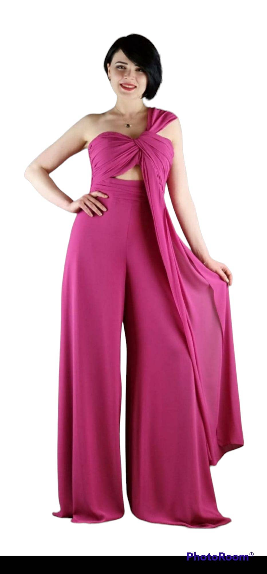 Hollywood tæppe elegant buksedragt langs chiffon ærmer med v-hals blonder omkring taljen og chiffon wrap øverst planerne med slids
