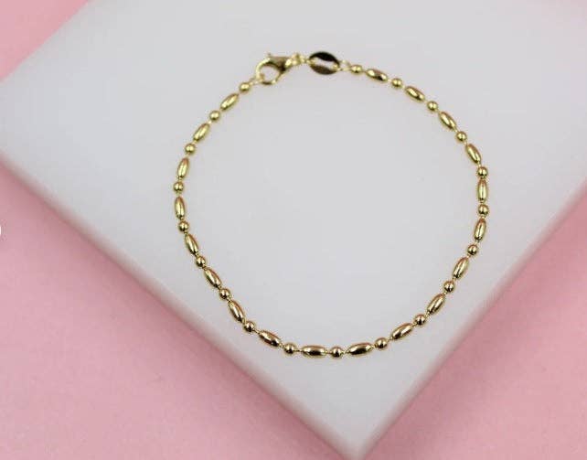 Beskrivelse: * Materiale: 18K Guld Fyldt * Mængde: 1 armbånd kæde (bulk ordrer accepteret) * Farve: Guld * Længde: 7 inches