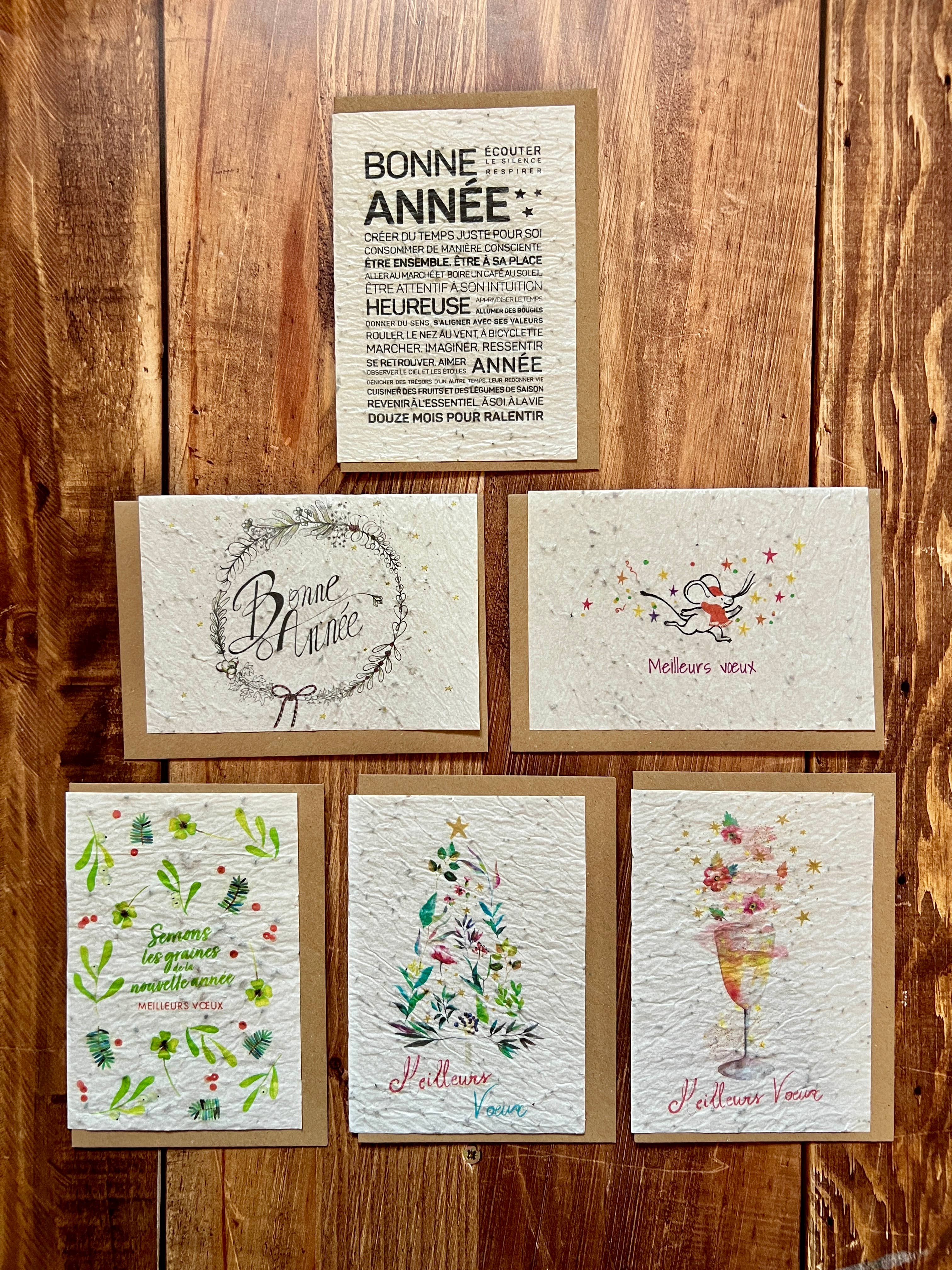 Vores Godt Nytår kort har en håndmalet illustration. Det omfatter udtrykket „Godt Nytår“. Størrelse: A7 -parret med en metallisk guld kuvert - pakket med en klar cello ærme med tætning eller en kasse med klart låg