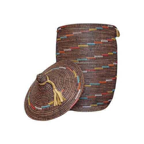 Håndvævet ghanesisk hundekurv Giv dit kæledyr et stilfuldt og hyggeligt hvilested med denne smukt håndvævede hundekurv fra Ghana. Lavet af holdbart elefantgræsstrå, tilbyder den både komfort og langvarig kvalitet, samtidig med at den fremviser autentisk afrikansk håndværk. Funktioner * Håndlavet i Ghana af robust, naturligt elefantgræs * Let, men stærk til daglig brug * Åndbart vævet design holder dit kæledyr køligt og komfortabelt * Forbedret med traditionelle mønstre og levende farver * Ideel til små til mellemstore hunde Denne kurv er mere end en kæledyrsseng — det er et unikt kunstværk, der tilføjer varme og kultur til dit hjem. Ved at vælge dette produkt støtter du Fair-Trade håndværkere og hjælper med at bevare traditionelle væveteknikker.