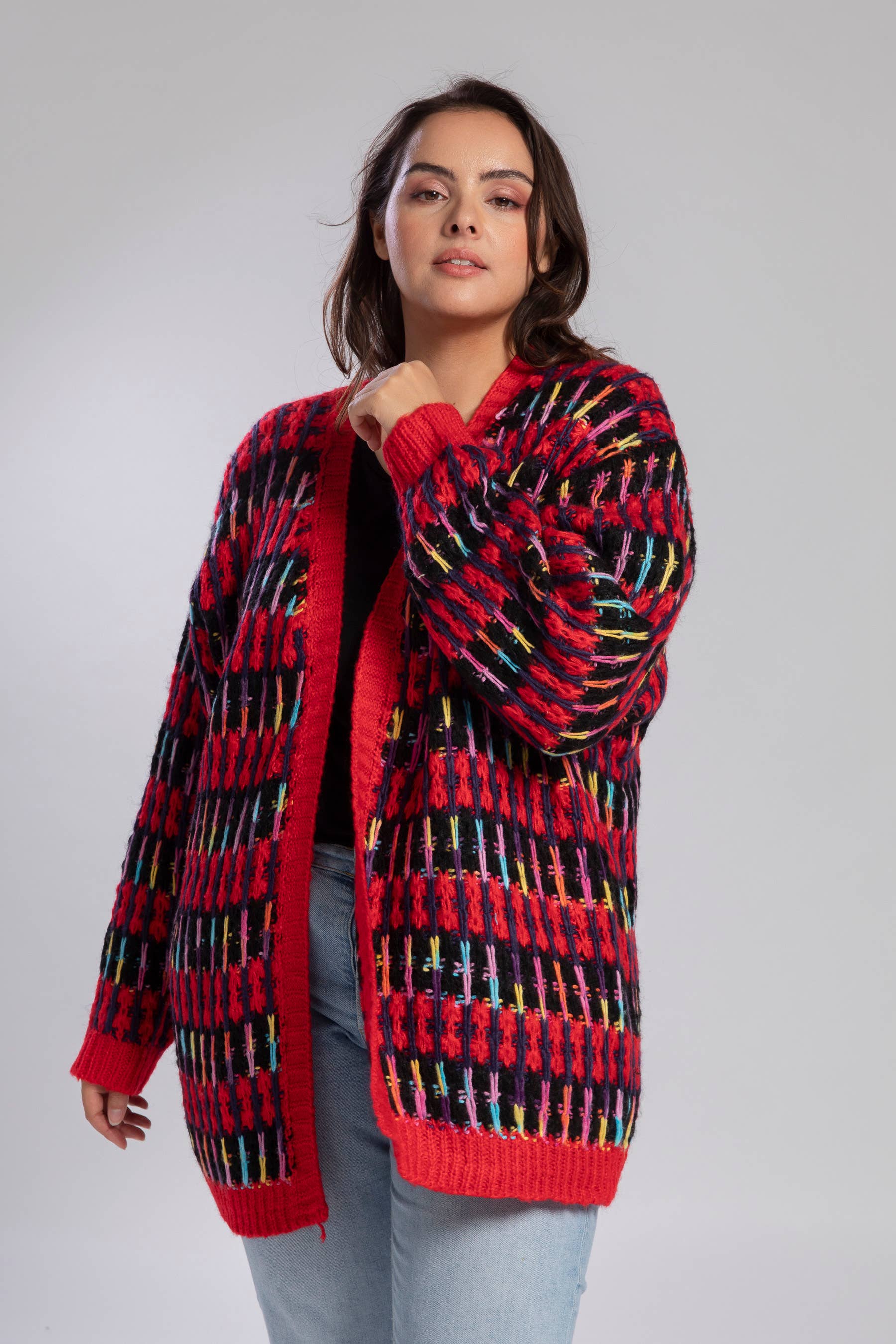 Stor grå sweater med pailletmønster (A907)