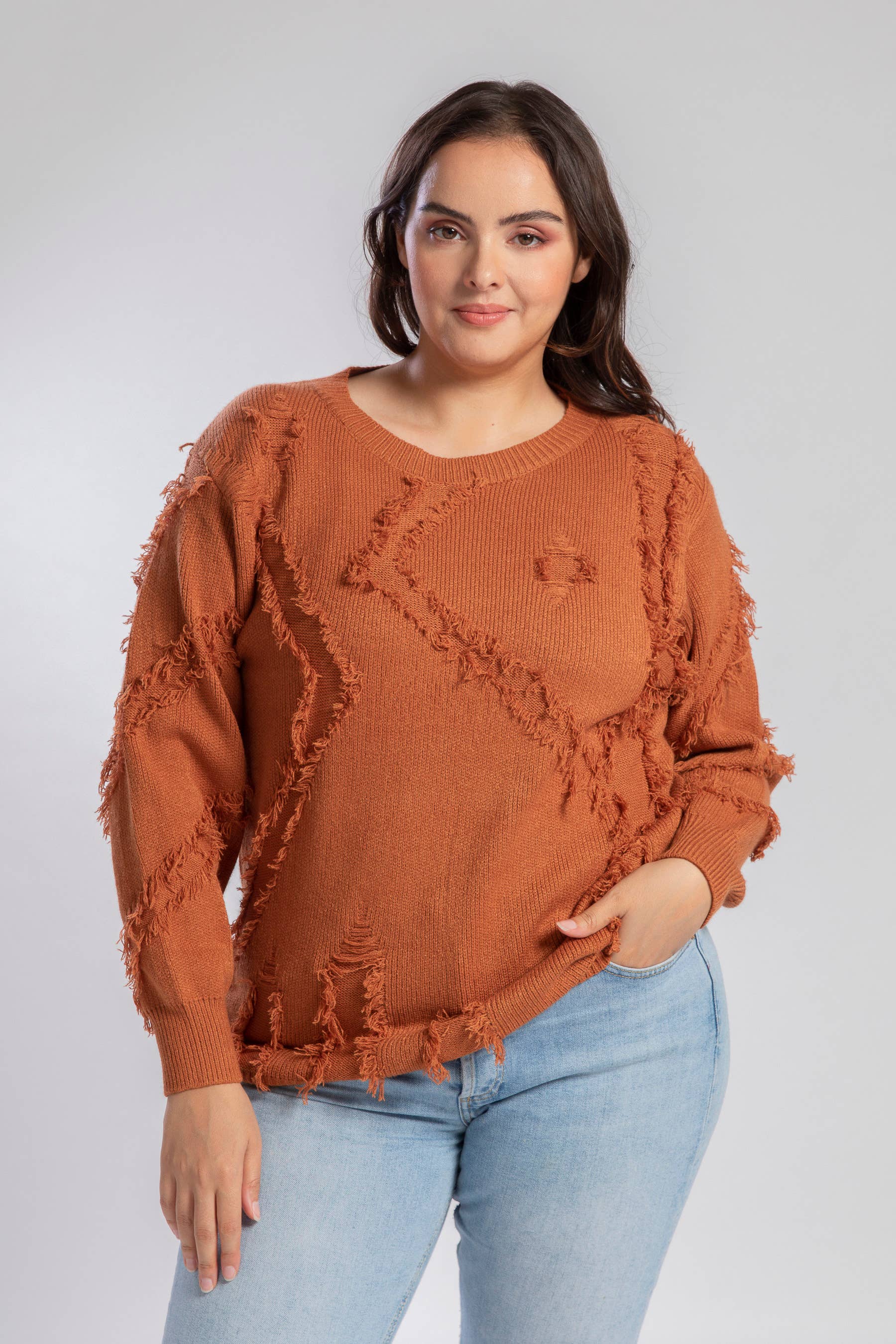 Stor størrelse grå sweater med pailletmønster (A907) L(42/44), XL(46/48), XXL(50/52)